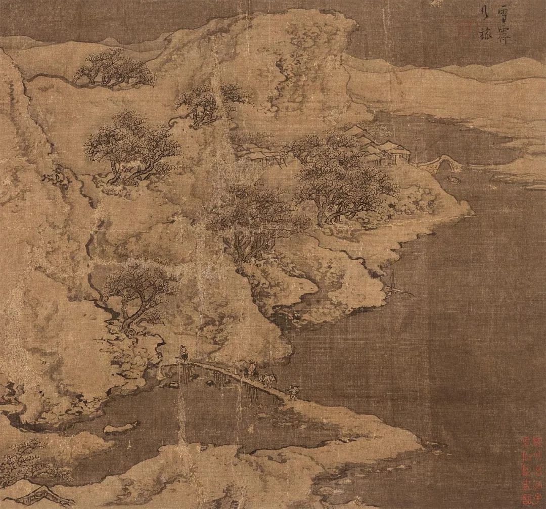 将画面由上至下,或由左至右分成几段,段与段之间用云雾自然过渡,按主宾关系每个段落均有景物,则总体构成一幅完整、气韵贯通的山水画。