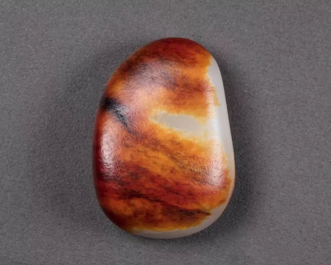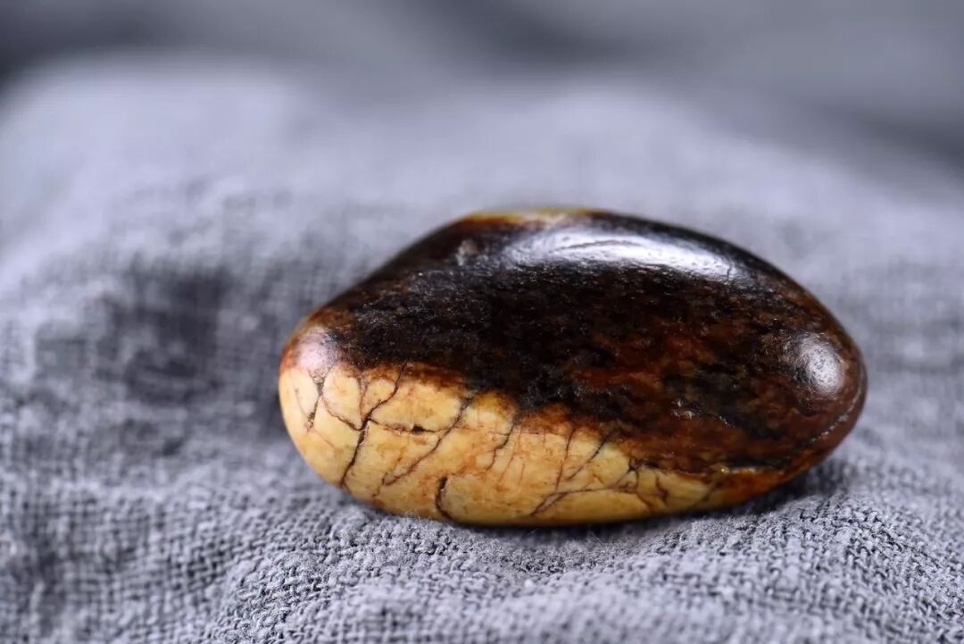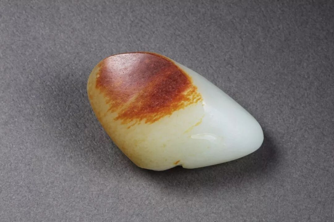 籽玉表面的颜色,会过渡到消失或是突然中断,这个颜色的边界就是色界。染色仿制而成的和田玉籽料,其颜色往往十分显眼浓郁,并且浮于表面,颜色分布也没有渐变过度的形态;