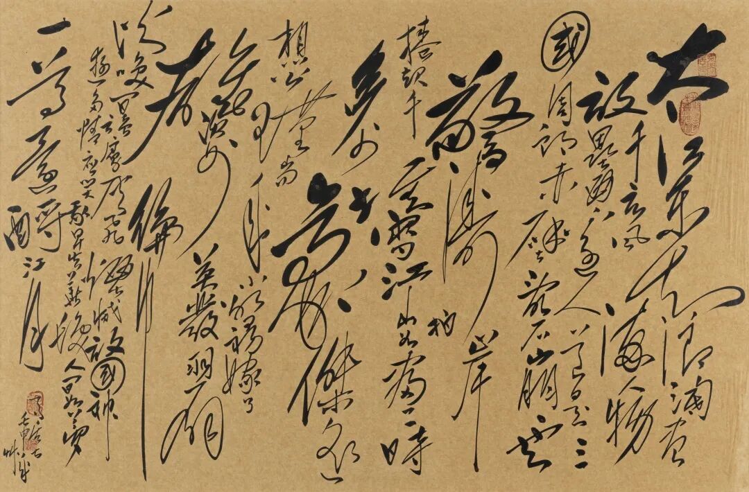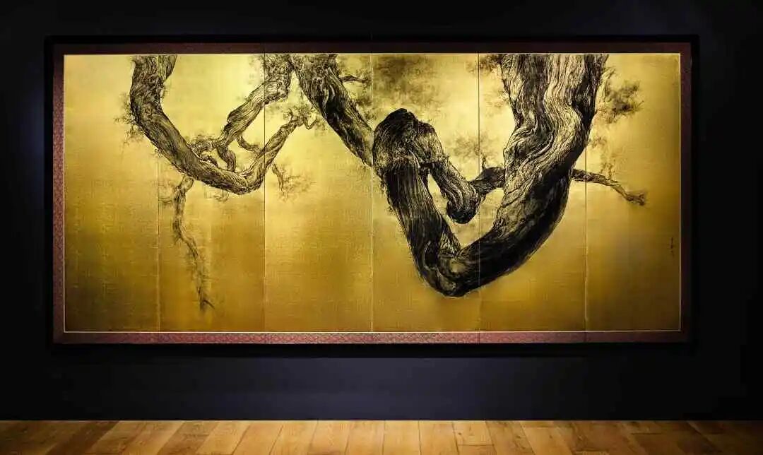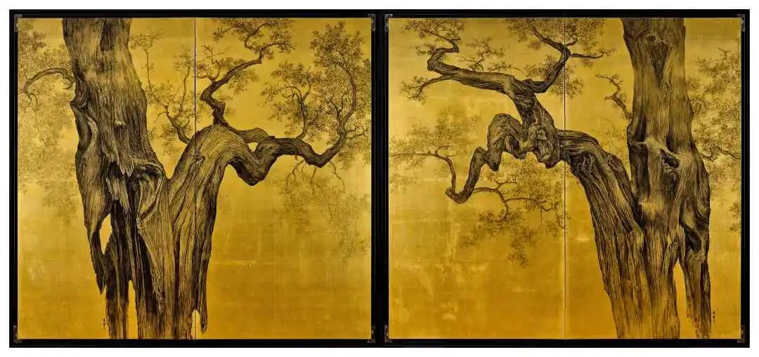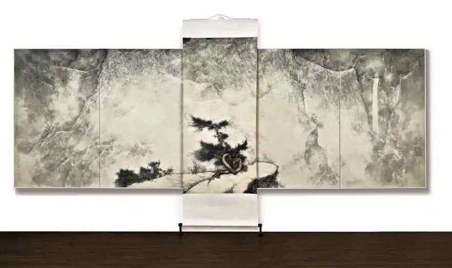 画中柏树在寂静的月光下悠然伸展,仿佛随着月光起舞。李华弌不常用绢本创作,而此作尺幅逾两米,属实罕见之作。