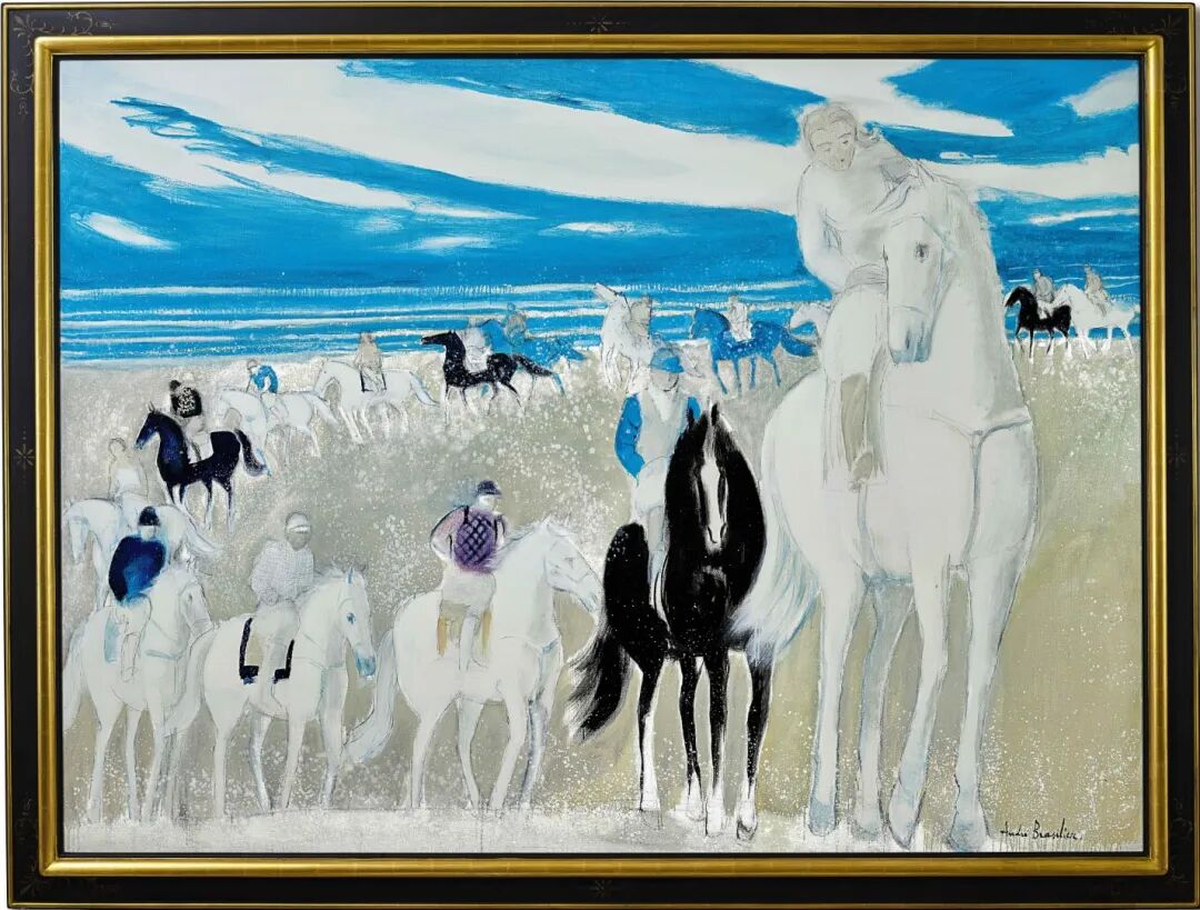 刚刚在香港苏富比艺术空间举办完大型回顾展的安德烈·布拉吉利是巴黎画派硕果仅存活跃至今的现代艺术家,他善用大胆色彩诠释集野兽派、印象派、表现主义以及象征主义等多个美学派别集一身的风格。《盛大巡游》是布拉吉利作品之中罕有的多人群像作品,画中马、人物、乐器各自代表布拉吉利在生活文化中摄取不同的灵感元素,它们各在本作中构成了重要的成分。经过长达数十年的创作生涯,布拉吉利将他受过影响的不同画派风格融合一体:在人物的描绘上可见野兽派的大胆笔触,而在背景的用色中可见印象派的细腻。这些风格的完美融合,在画布上渲染出了欢乐、热闹的气氛,引领着观众步入布拉吉利的梦幻世界。