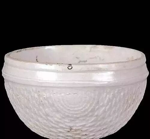 白釉花口碗 北宋 高10.2、口径25.6、足径8厘米 1969年河北省定州市贡院内北宋太平兴国二年(977年)静志寺塔基地宫出土,现藏于定州市博物馆。