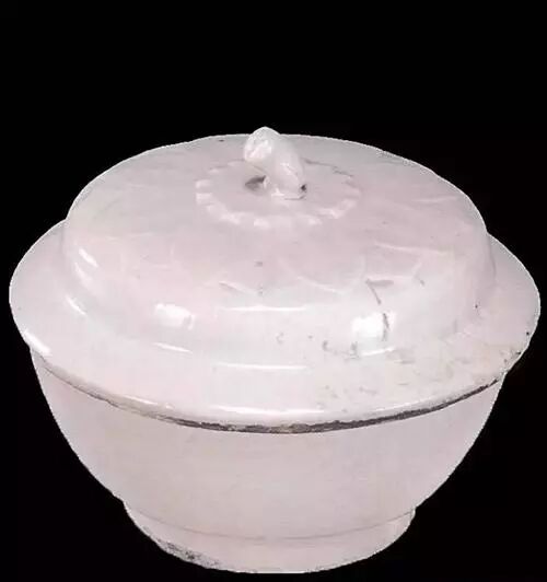 白釉印花盖碗 北宋 通高13.9、口径16.7、足径9.5厘米 1969年河北省定州市贡院内北宋太平兴国二年(977年)静志寺塔基地宫出土,现藏于定州市博物馆。