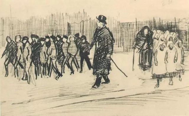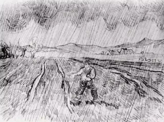 与梵高的素描本一同被发现的,还有一本火车站咖啡馆的记事本,里面是某位店员写下的,1890 年春季到夏季的日常收支等交易记录。它是我们确定素描本来历的重要物证。正是通过小记事本里面的记录,梵高使用的“日记账簿”的真实性才得以确认。从小记事本仅存的若干页记录中我们得知,1890 年春天,雷伊医生去圣雷米的疗养院看望了梵高。应画家要求,雷伊医生将三样物品带回了阿尔勒,还给了吉努夫妇,其中就有“一个大素描本”。他将这些东西交给了咖啡馆小记事本的记录者,后者仔细地在 1890 年5月20日那一页写下了这批寄存物的细节。原文如下:雷伊医生代表画家梵高,为吉努先生和太太送回了空橄榄盒子、一包格纹手巾及一个大素描本,并为迟迟未能送还而表示歉意。账本内的素描是纯粹的,它们既不是售卖品,也不是用来向其他艺术家展示近期画作的样画。而是画家日常的最真实的随性习作。在这些作品中,有很多是在特定的时间地点,对观察对象作出的即兴记录,即所谓的“第一稿”,抓住了画家当时转瞬即逝的想法。现在来看看这个账本都画了什么吧!日记账簿共有 65 幅素描作品。素描本里的画作完成的速度和详尽的程度各不相同,也因此为我们了解梵高的素描创作,提供了新的视角。梵高在素描本里通过不同的笔法——平行线、阴影线、刺点、虚线等,将芦苇笔的特性展现得淋漓尽致。他将芦苇笔头削出不同的宽度,通过调整墨量,可以制造出类似羽毛笔的细线,或者类似画刷的大笔触,将创意无限的多功能芦苇笔运用到了极致。梵高认为向日葵与橄榄树、丝柏树和阿尔皮耶山脉一样,是普罗旺斯风景的精髓所在。在动身去巴黎之前,他写信告诉提奥,自己在寻找一些先前鲜少入画的风景题材,他需要“灵感,需要一缕高处的阳光……从而画出最美的事物。”这幅《向日葵花田》集合了普罗旺斯风景四种标志中的三种:山脉、丝柏树和向日葵。向日葵后是一轮光芒万丈的灼灼烈日。在完成杏树枝的油画之后,梵高遭受了一次时间最久的精神崩溃,持续了将近两个月。3 月,他向提奥吐露:“绘画工作进展良好,你会发现最后画的那幅开花树枝的油画可能是我画得最耐心、最好的一幅,我画得很平静,对笔触极为确定。而第二天我就很糟了,像个笨手笨脚的家伙。”梵高在给弟弟提奥的信中经常提到丝柏树:“这些柏树宛若黑色的音符,跳跃在阳光明媚的风景中。这些黑色音符既富于神韵,却又极其难以演奏好。”“脑子里始终浮现着柏树,很想把它画成像向日葵那样的作品。但是很奇怪,为何没有人画得像我所看到的一般。柏树的线条与比例确实很美,宛如埃及的宫女。”芦苇笔富有表现力的生动笔触,再现了丝柏树纠缠的曲线和茂密的枝叶。![]()