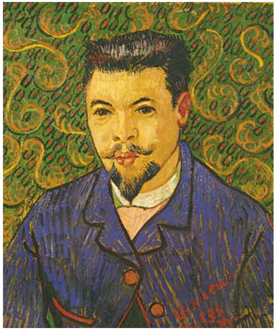 梵高对吉努夫妇的感情之深,尤其是对玛丽,可以说到了近乎难以自拔的程度。作为朋友,他深深地为她着迷,也被她的个性所吸引。对他而言,这位 40 岁的咖啡馆老板娘身上,集中体现了阿尔勒妇人特有的风韵。1888 年冬天在阿尔勒以及 1890 年在圣雷米住院期间,他一共画了七幅《阿尔勒妇人》油画肖像(现存六幅)。后来梵高在再次去往巴黎前,通过菲利克斯·雷伊医生将这本画册转交给了吉努夫妇。雷伊医生也是画家最亲近的朋友之一,1888 年12月23日梵高割掉自己的耳朵,被送到医院之后,雷伊便负责为他治疗。和吉努夫妇一样,他们在梵高于阿尔勒度过的生命的最后阶段里,一直关心和守护着他。梵高时常向年轻的医生寻求建议,离开治疗科 10 天后,为了表示感谢,梵高为他画了一幅肖像,并请朋友为此画做了一个漂亮的胡桃木画框。![]()