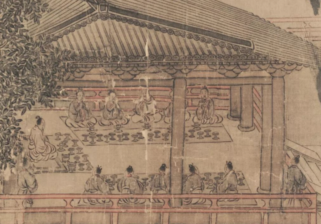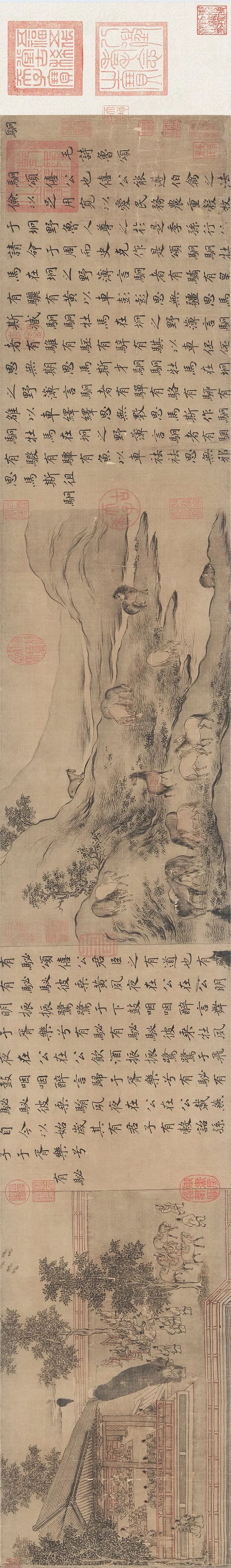 这幅作品的文字,相传是宋高宗赵构书写,画面是宫廷画师马和之所绘,右书左画,各幅相间。