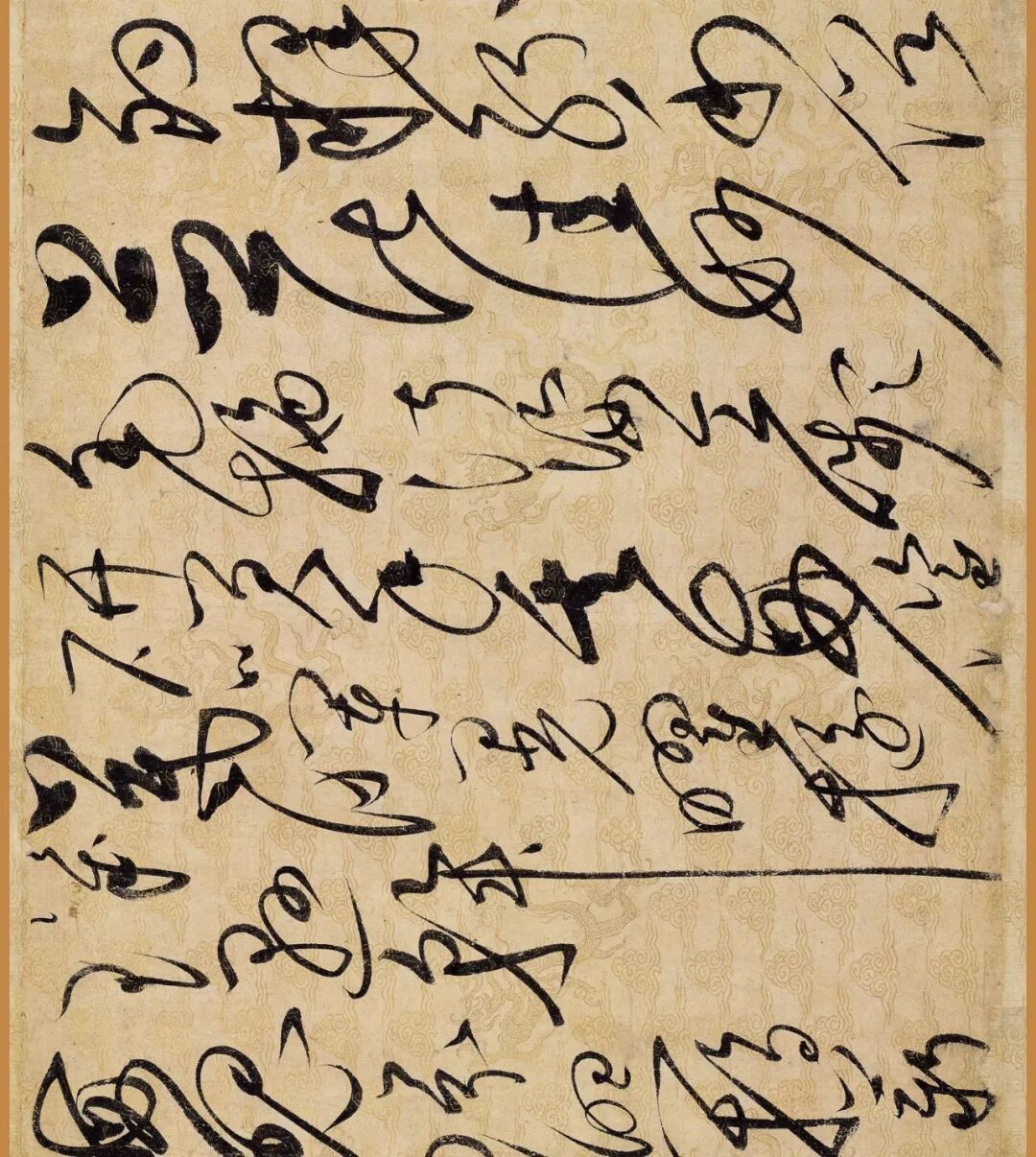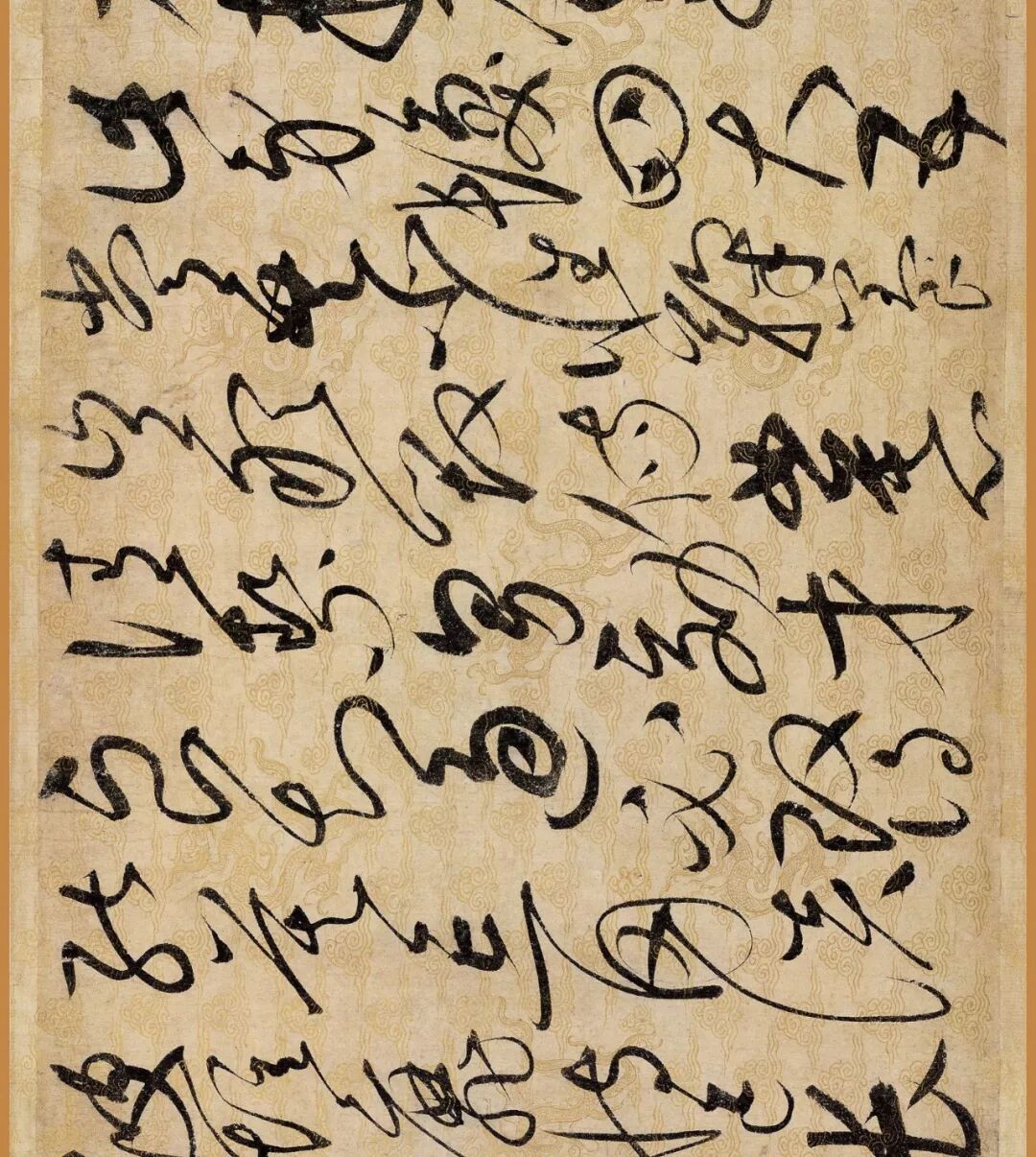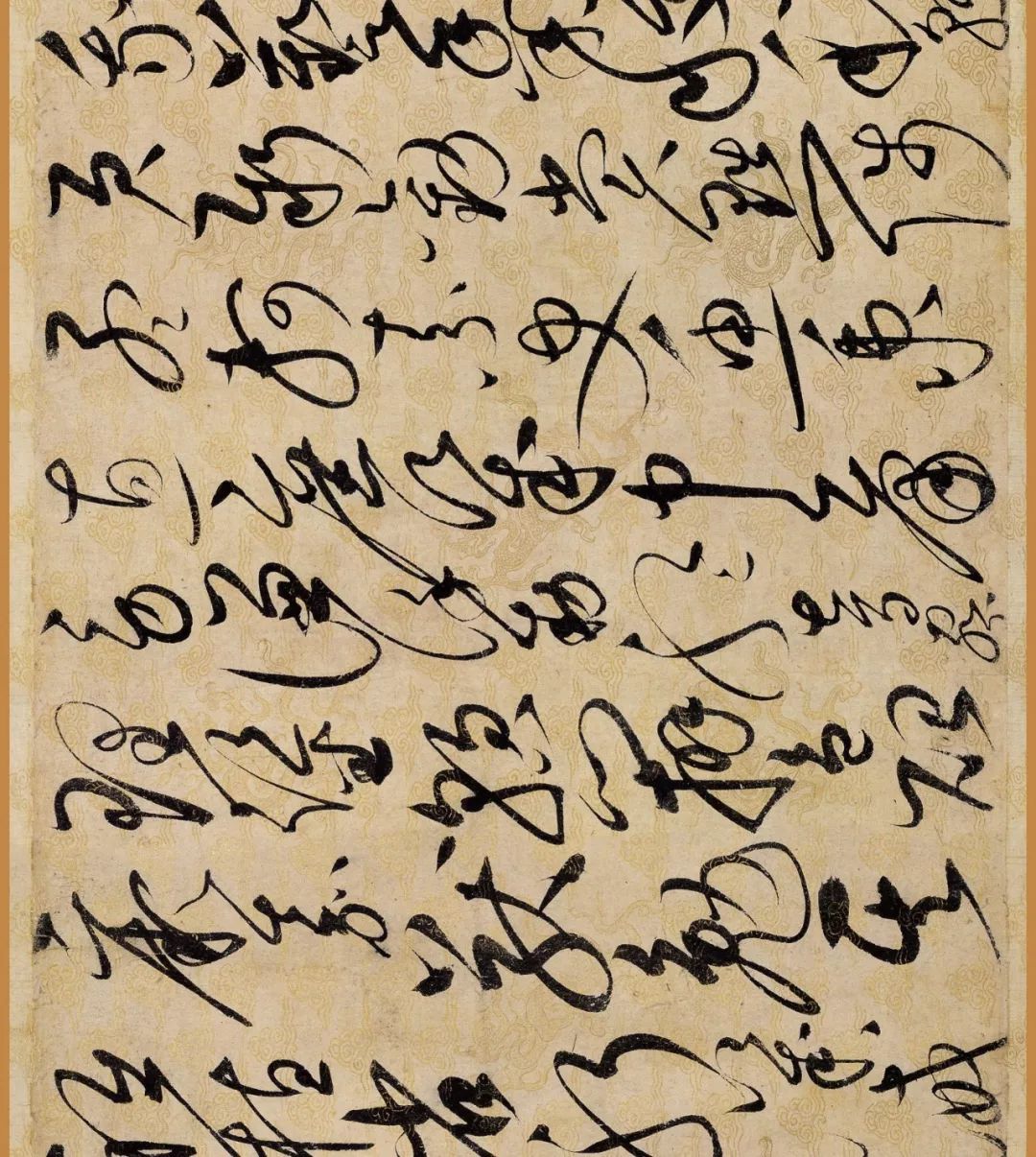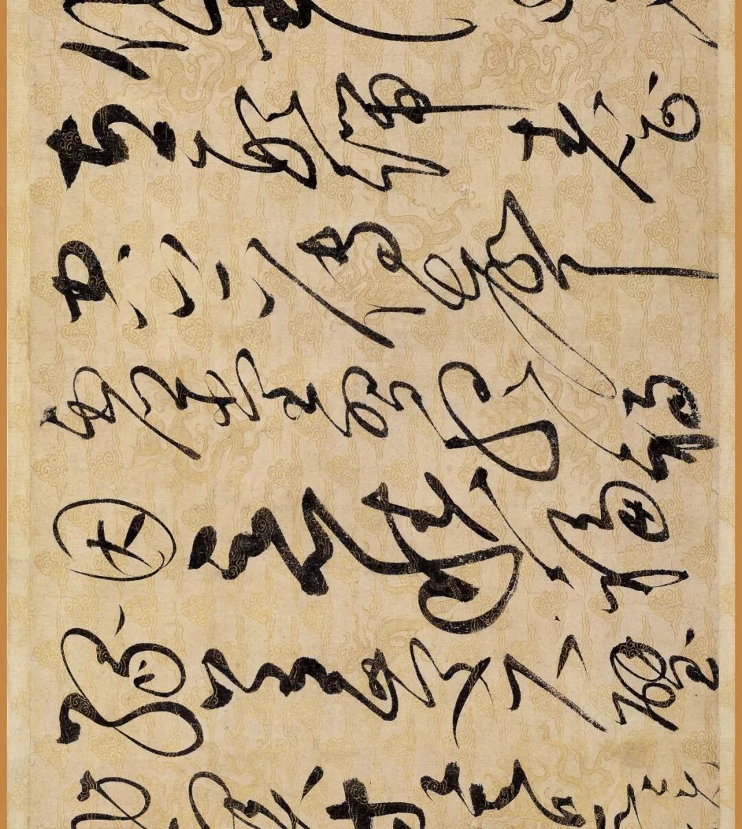 据说这幅作品是赵佶40岁书法大成时的作品。对了,你还要仔细看下它的用纸哦,是描金云龙纹纸。