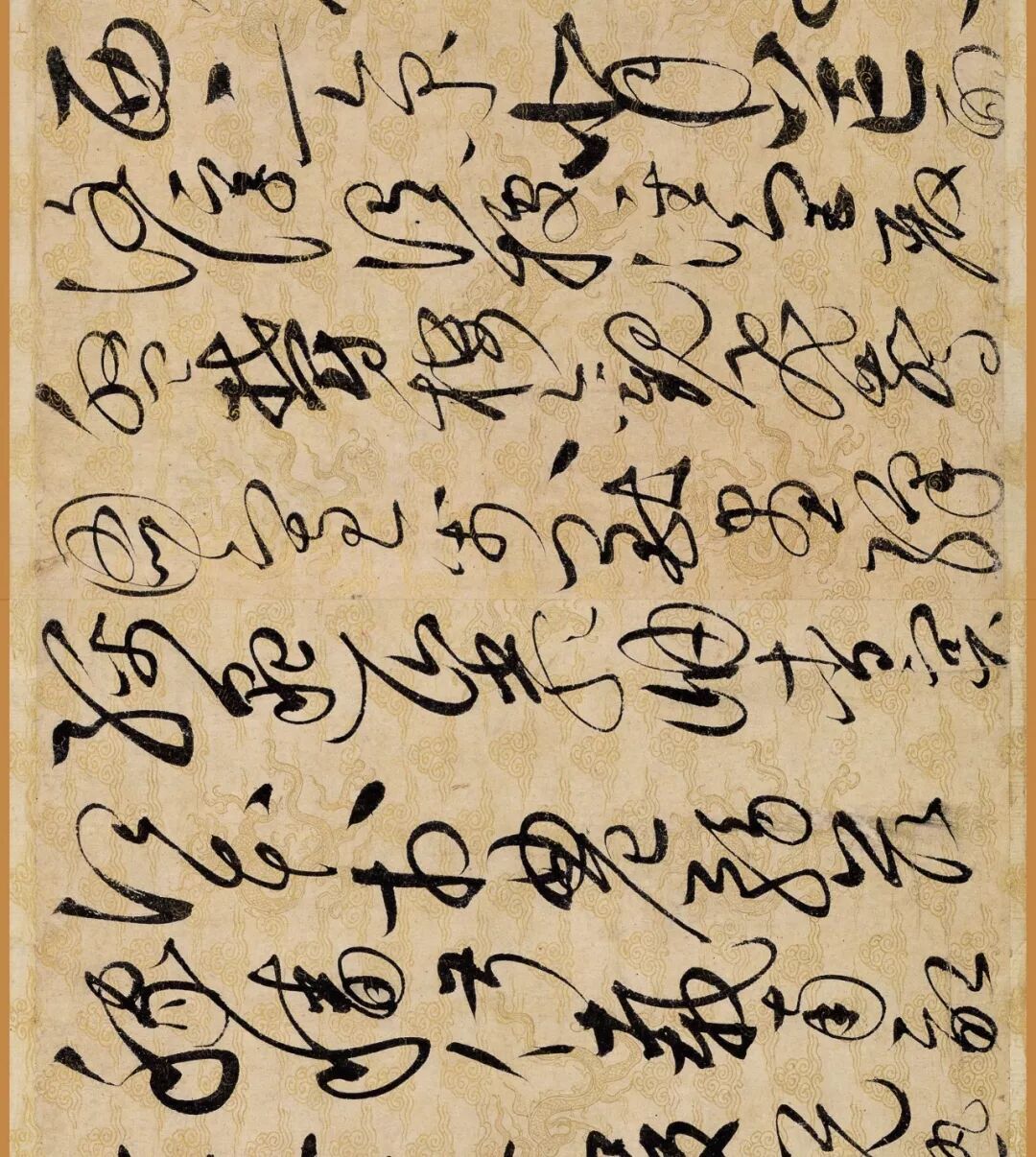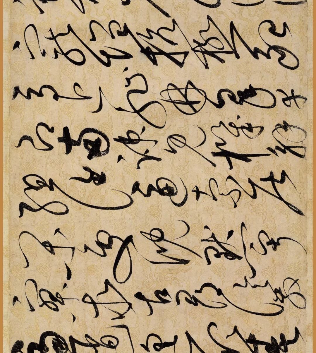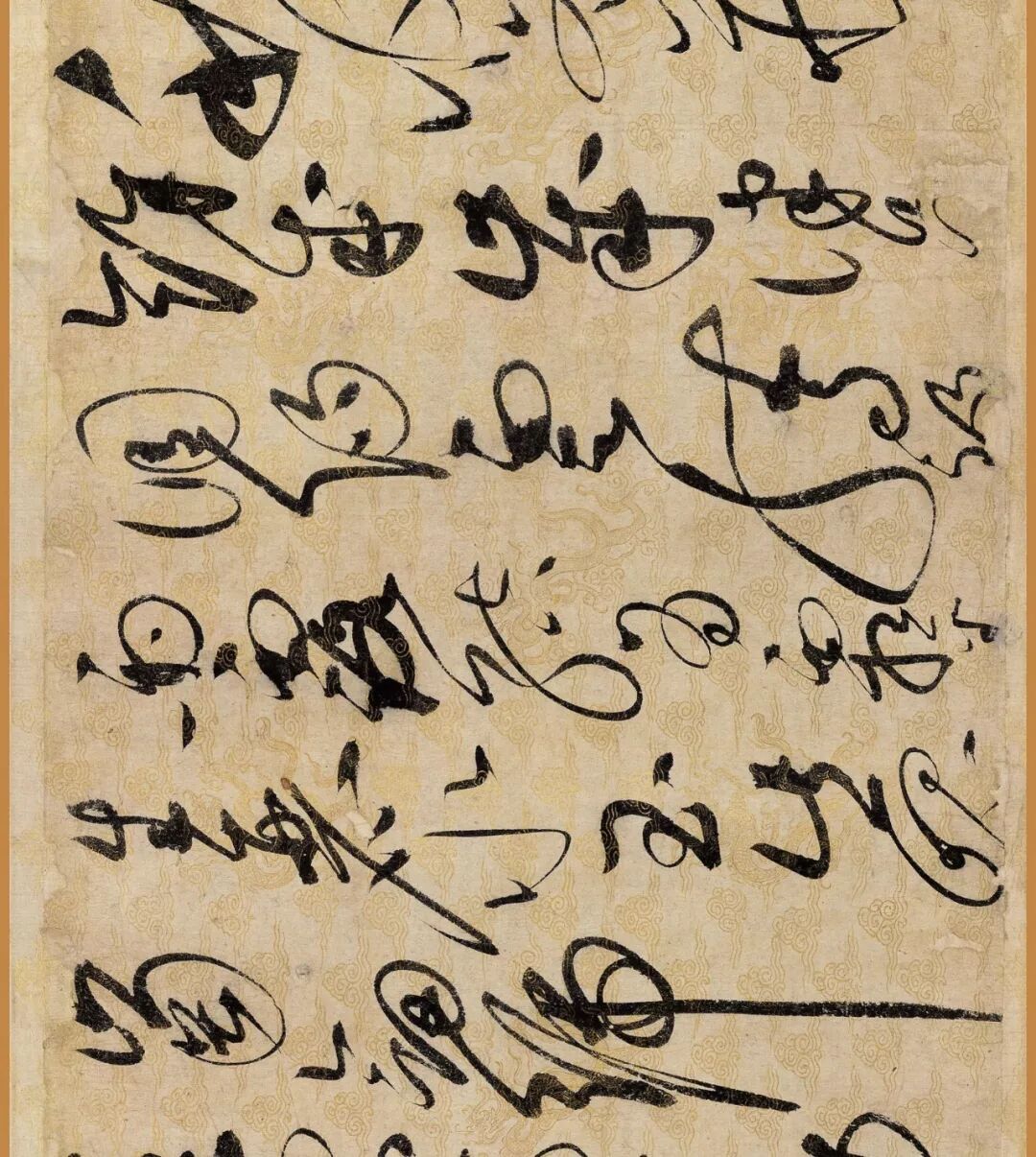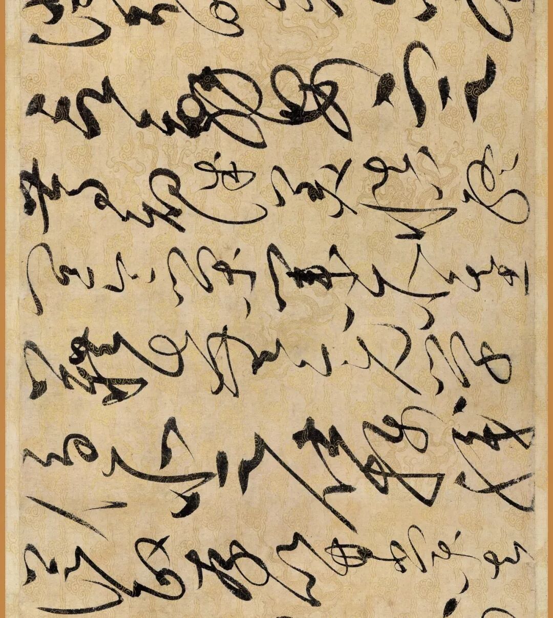 据说这幅作品是赵佶40岁书法大成时的作品。对了,你还要仔细看下它的用纸哦,是描金云龙纹纸。