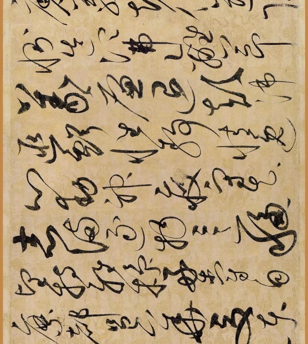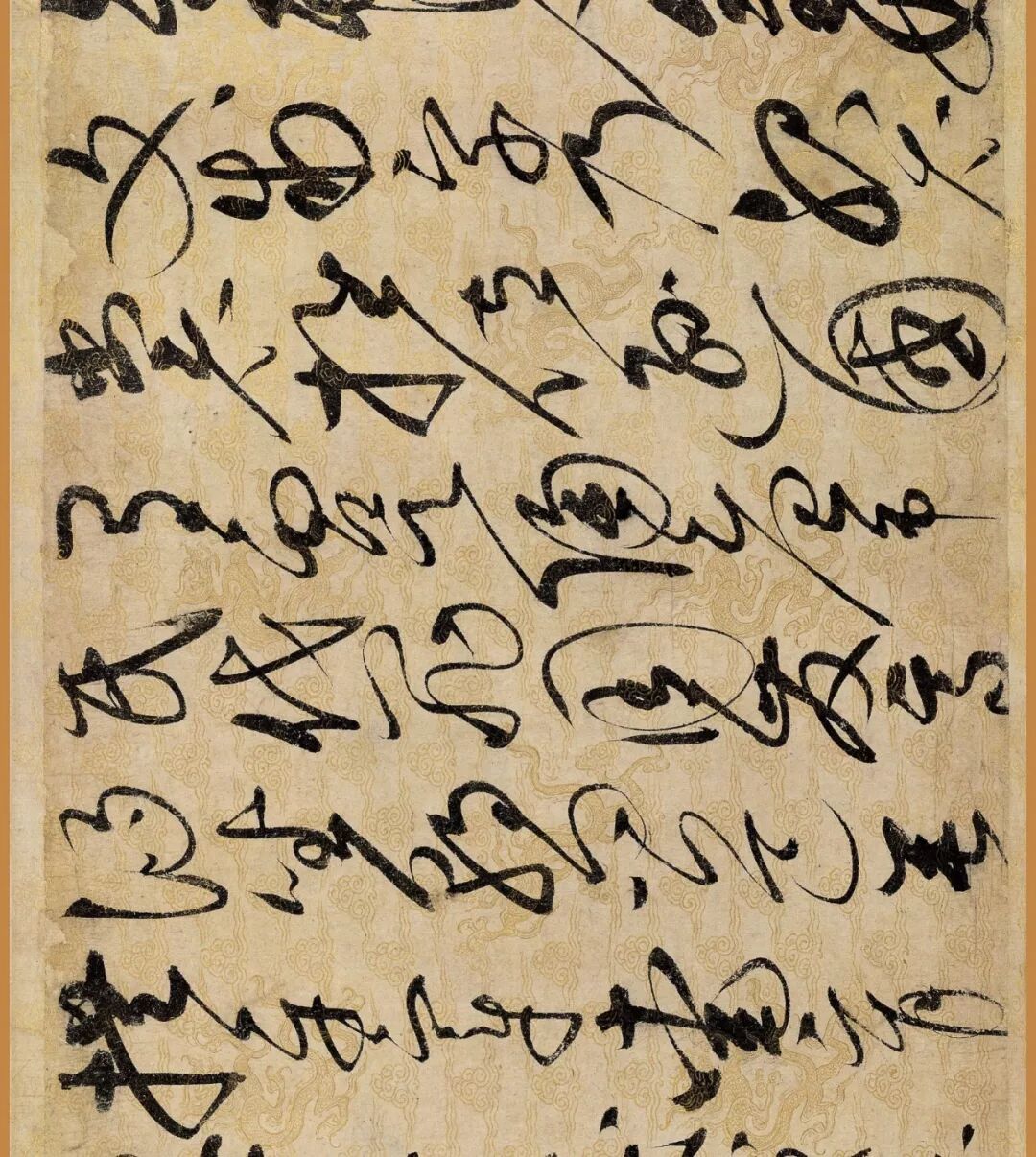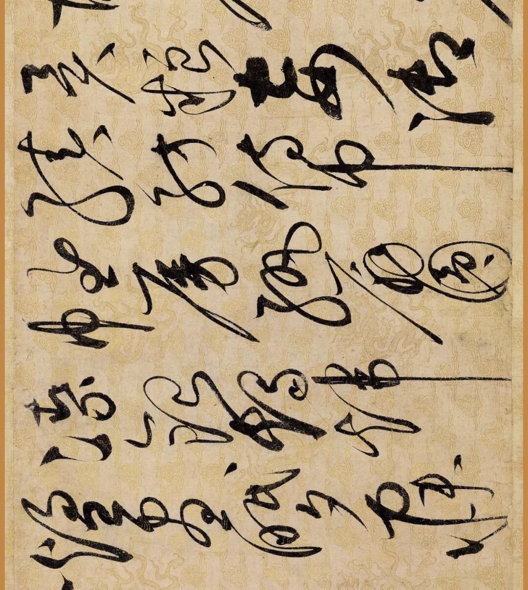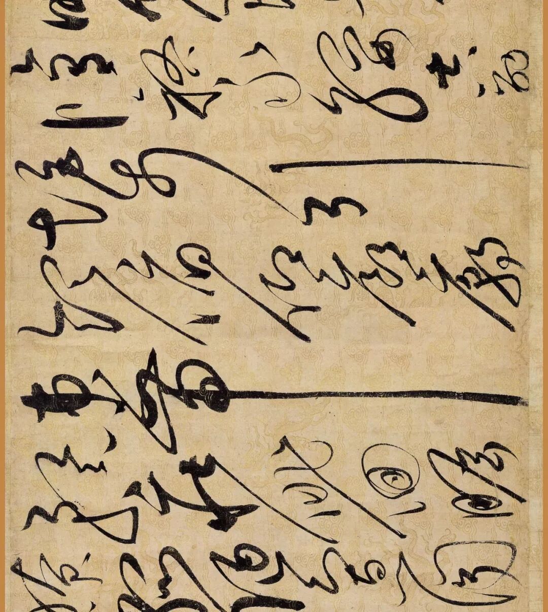 据说这幅作品是赵佶40岁书法大成时的作品。对了,你还要仔细看下它的用纸哦,是描金云龙纹纸。