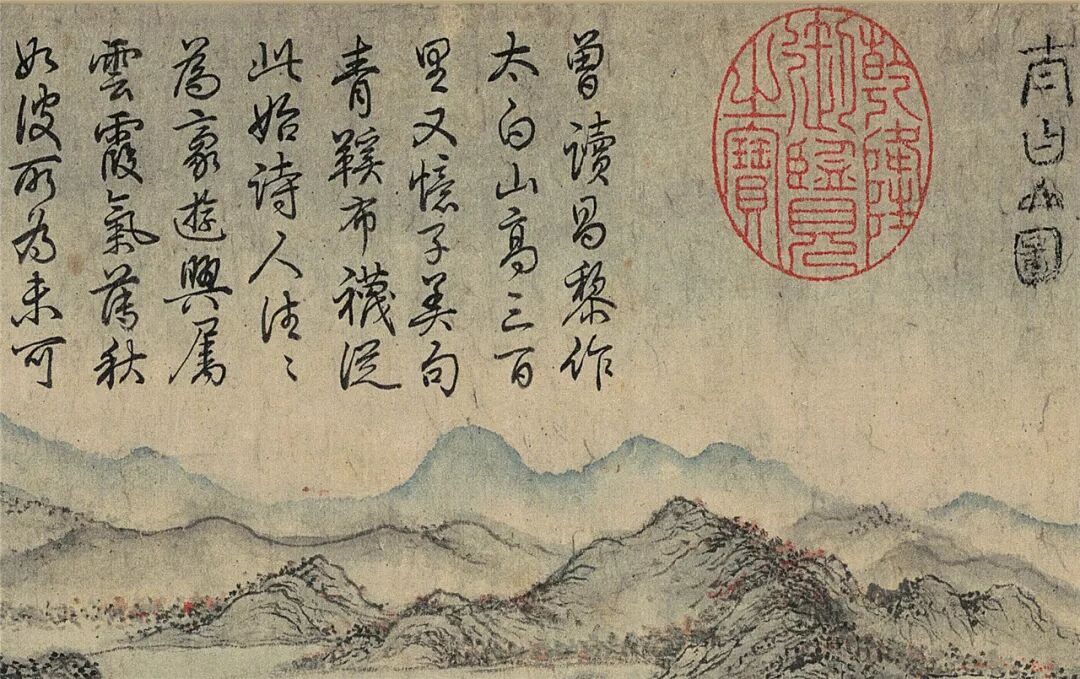 这是描绘的浙江太白山天童寺一带的景色,据说写实性非常强,这个画面仍然可以和今天的实景相对应。