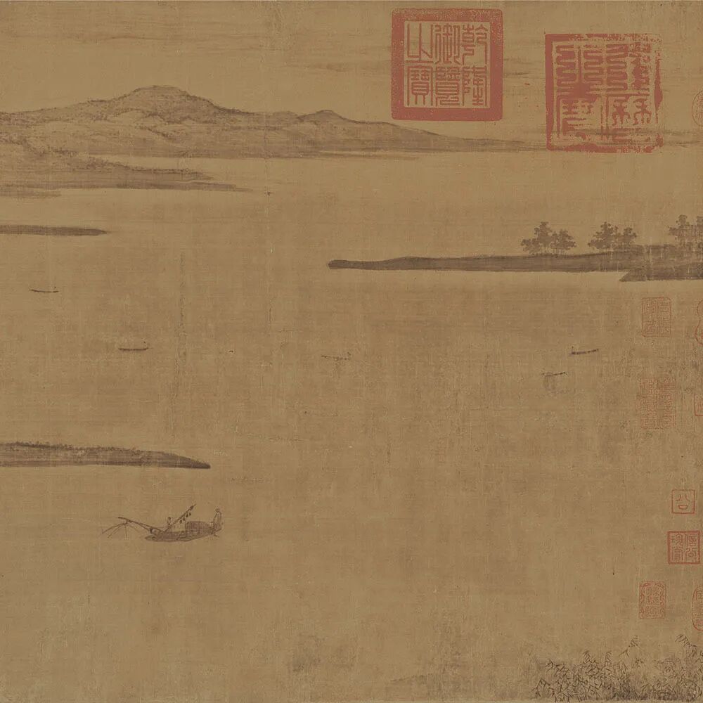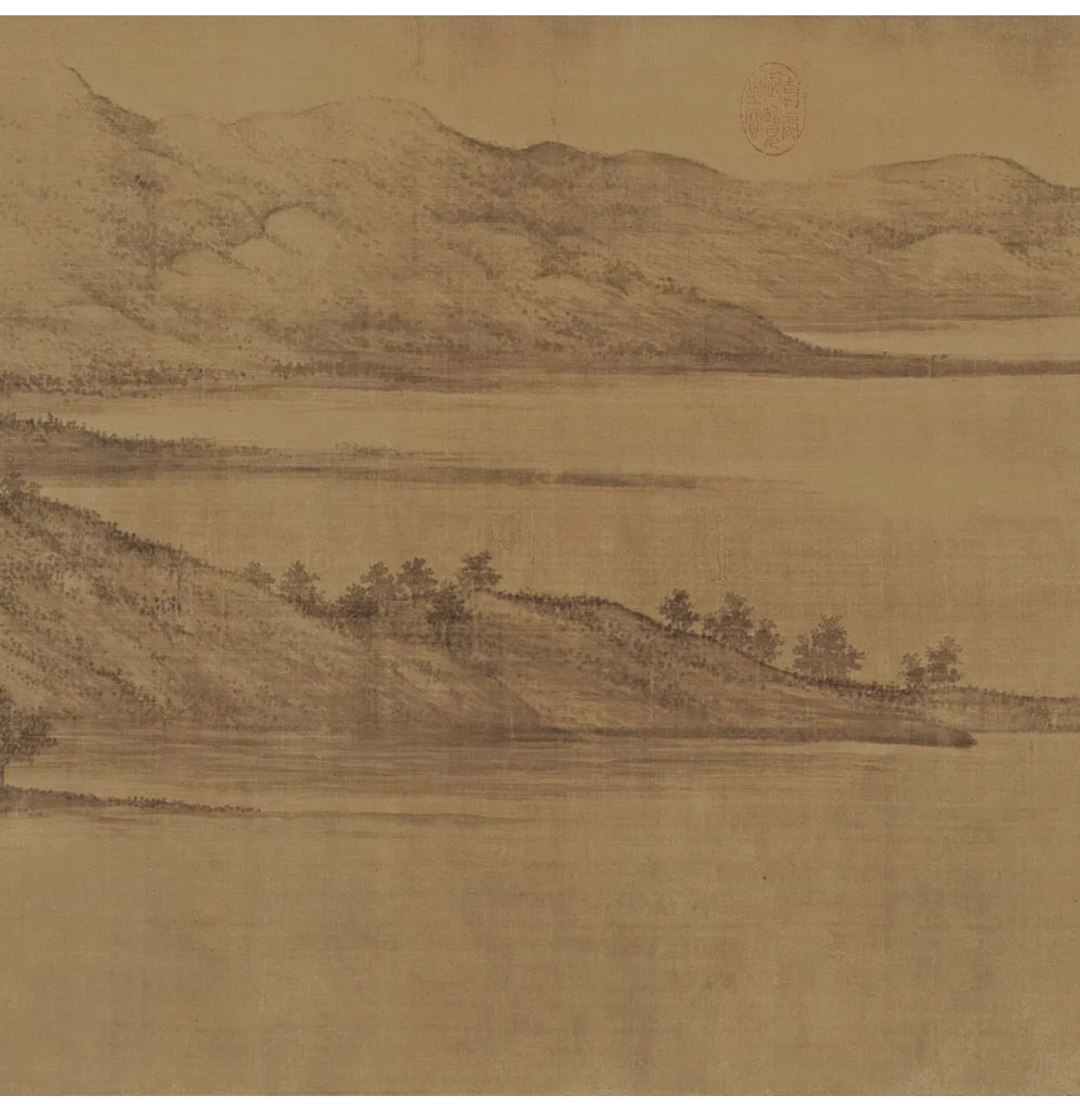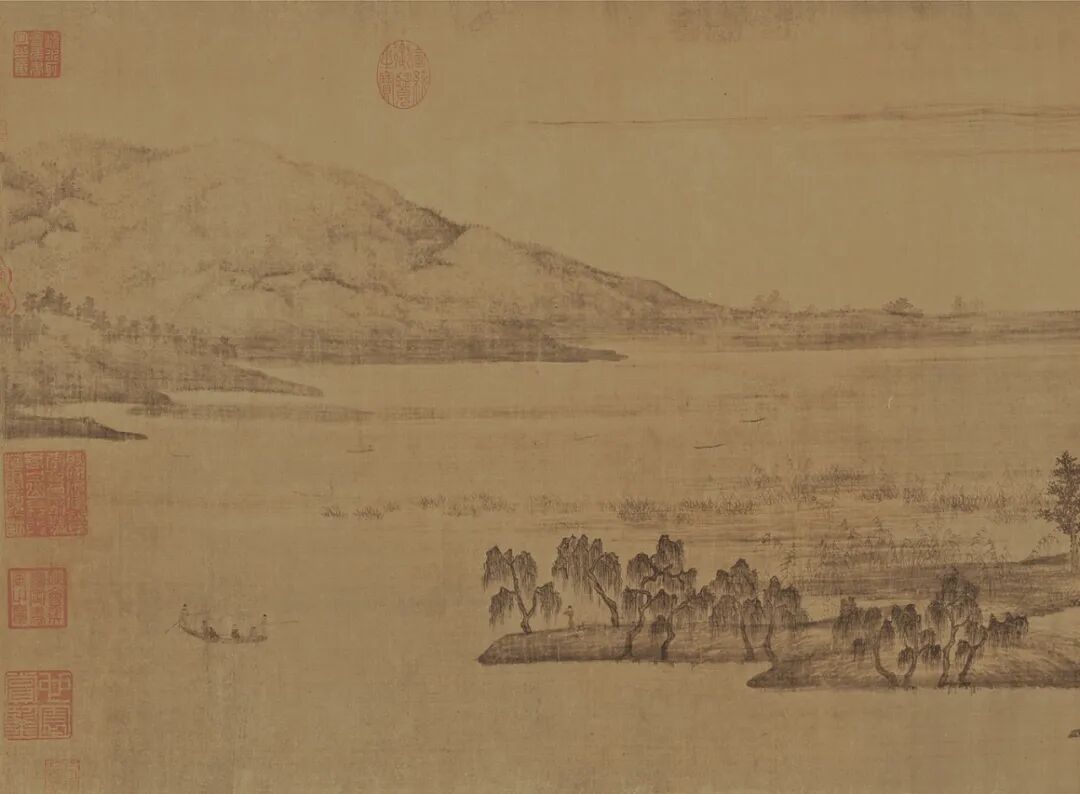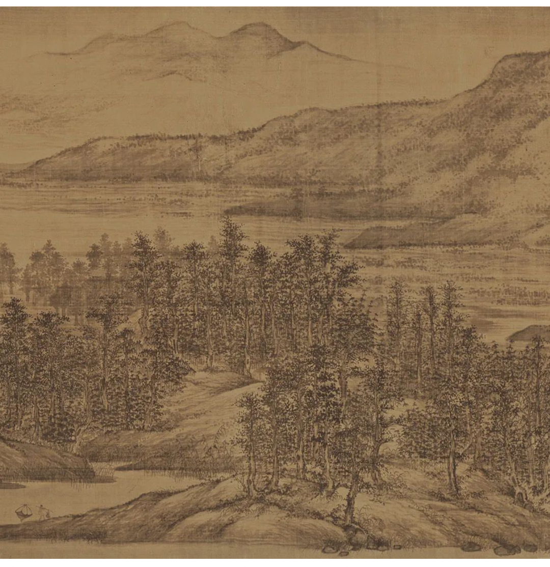 这是南唐画家动董源的代表作,身为江南人的他,把风光闲适、林木秀密的盛夏景色描绘的非常细致。