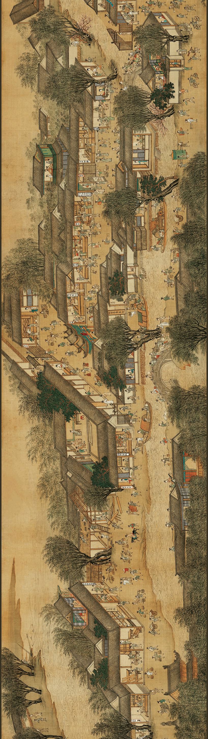 据统计,全画有各色人物1万2千余人,各色房屋建筑约2140余栋,各种桥梁50余座,各种客货船只400余只,各种商号招牌200余块,涵盖了珠宝、鞋帽、凉席、乐器、盆景和丝绸等50多个手工行业。