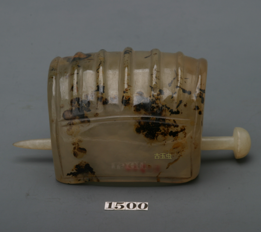 簪长10.6厘米,簪为碧玉,作云头如意状。簪与玉冠材质、风格不尽相同,时代略晚,应是不同时期的作品,或为毕沅在收藏把玩中后配。