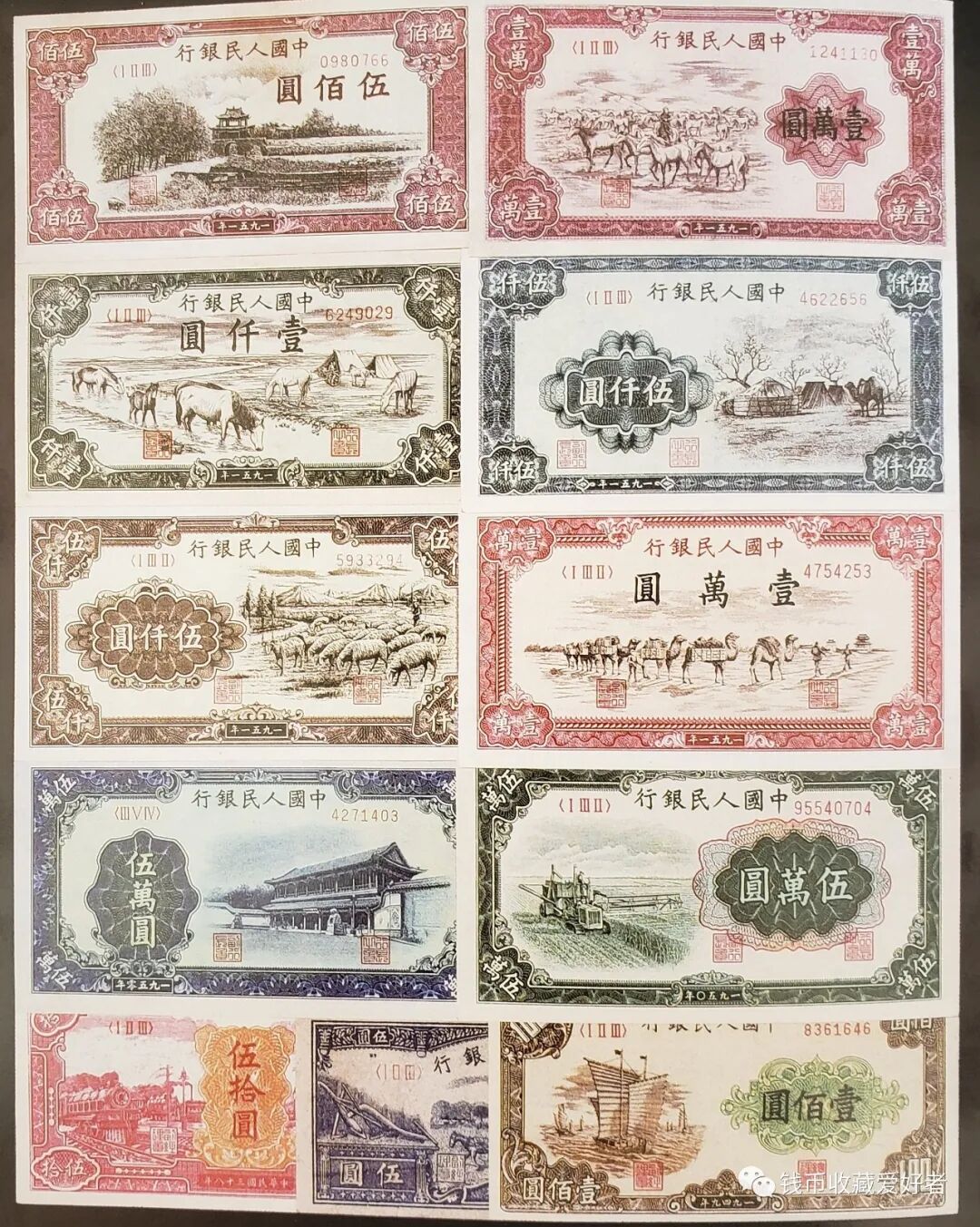 我国第一套人民币纸币面值大而且杂,但实际单位价值小,最小面额为一元,最大面值为五万元,共12个等级,没有主、辅币之分;