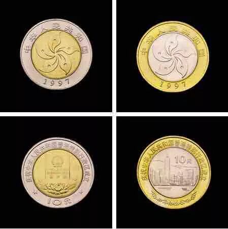 庆祝香港特别行政区成立:庆祝中华人民共和国香港特别行政区成立普通纪念币于1997年发行,材质为双色铜合金,面额10元,一套2枚,发行量为2000万套。