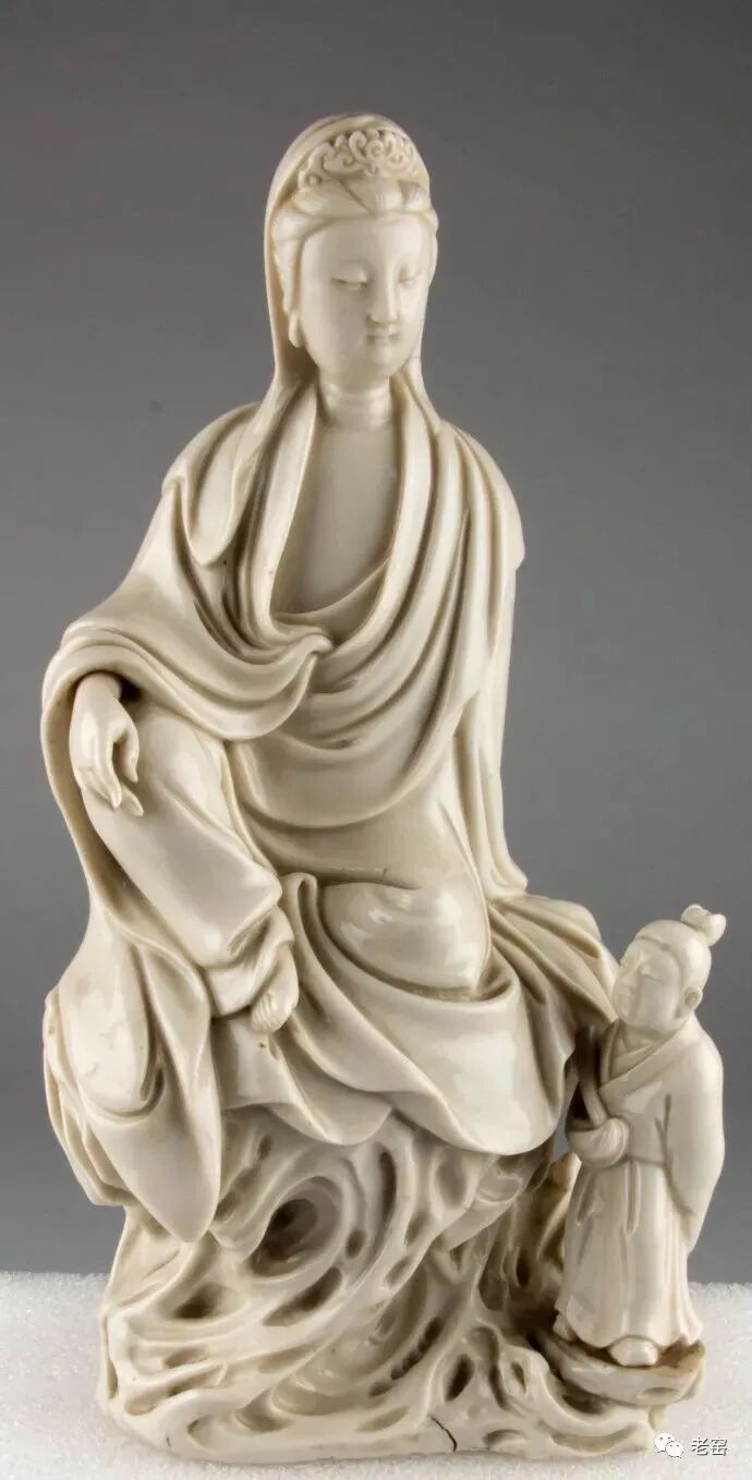 4、【恭迎观音成道日】北京故宫博物院清代德化窑白釉瓷塑:童子拜观音像