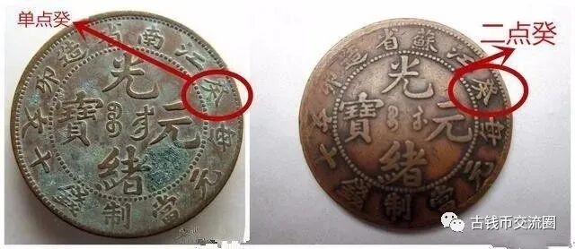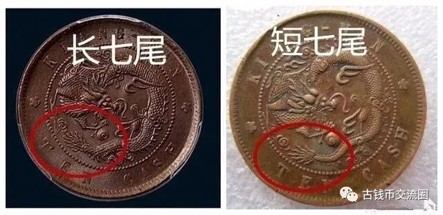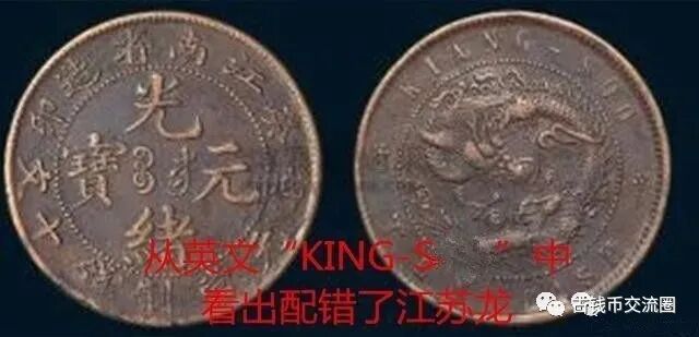 清末江宁布政司在南京铸造光绪元宝,并标注"江南省造",出现了以一个200多年前的旧省名来给新钱币命名这种人类造币史上绝无仅有的事情。正因为江南省的"有名无实",所以清末江南省造光绪元宝,深受后世收藏者的喜爱。不过一些新泉友一见到江南省造的铜元,就一脸懵懂,因为版本实在是太多了,都是毫厘之别,一时半伙实在难以分辨清楚。为此,我将江南省造铜元各种形制做一次梳理和归纳,供大家参考,希望能帮助大家更好地鉴别和收藏。按照铸币年代和形制,大致上可以把江南省造光绪元宝分成中心满文、中心花两类,下面主要从五方面介绍前面两大类的江南省造铜元。看铜元币面,如果中间,如果是两个满文文字就是中央满文,是话就是中央花。是不是感觉很简单?中央满文出现前期的老江南以及壬寅、癸卯、甲辰等年份,中央花出现在乙巳年江南省造光绪铜元。说到这中间的满文,就有玄机了。根据大小形态它又可以分为小满文、肥满文和长满文。从左开始分别是肥满文、小满文和长满文,放在一起还是极容易辨别的。根据两个满文中央的位置,又可以分为带点和不带点两类。老江南指的是江宁造币厂在1901年,也就是光绪27年所制造的那批最早期的铜元,与后来的壬寅、癸卯、甲辰、乙巳年所铸造的最大区别就是后面三种都会在币面上标注天干地支纪年,而老江南没有。甲辰可以分为开口甲和闭口甲;癸卯有单点癸和二点癸;乙巳可以分为上乙巳和横乙巳。江南省造铜元前期和壬寅、癸卯、甲辰年背面的蟠龙又可以分为编八尾,长七尾、短七尾等类型。乙巳年后面背后的龙版本很多很杂,既有飞龙、也有水龙,还有仿部颁细云、带星水龙、大眼龙七焰等等版本。因为江苏布政司(江苏省造)在自己建厂前,是和江宁布政司(江南省造)共用造币厂制币的,所以出现了钱模混用现象,在江南省造的铜元里,有许多错配了江苏省造铜元的背面钱模。如下图:错配短七尾江苏龙的江南省造癸卯当十铜元,只能从英文king-soo中看出,江苏龙也有编八尾、长七尾和短七尾之分。