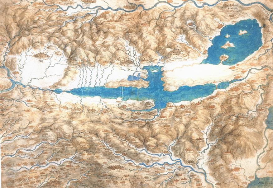 图13(上) 达芬奇《基亚那河谷地图》,1502-1503
