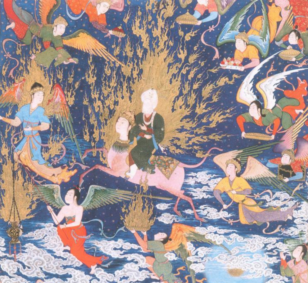 图22(右下) 《穆罕默德登宵》(Ascension of prophet Muhamud),现藏大英图书馆,伊朗大不里士,1539-1543