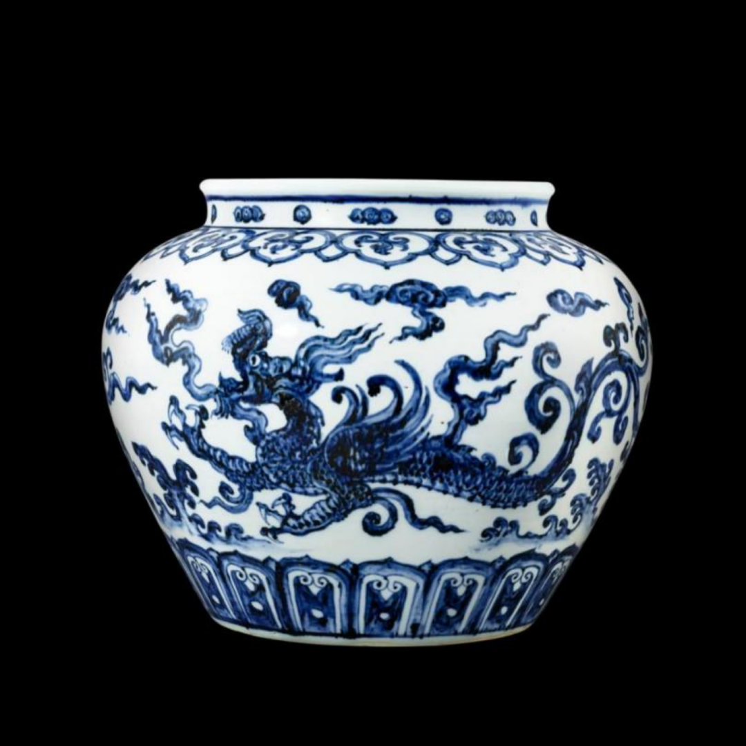 图26 《青花夔龙纹罐》, 24.4 x 29.8厘米, Sotheby's Hong Kong, 16th May 1989, lot. 112,明永乐(1403-1424)