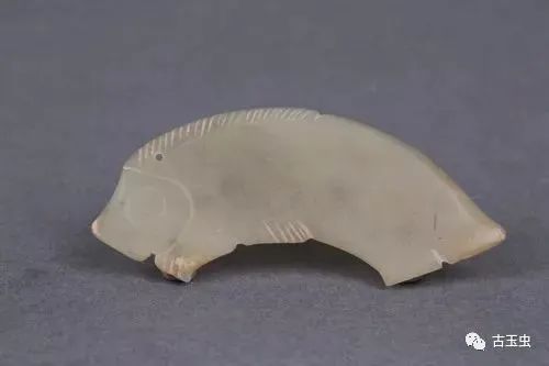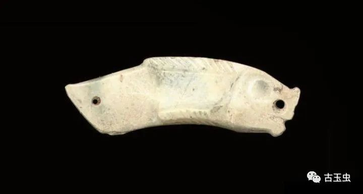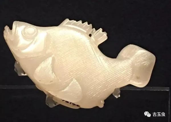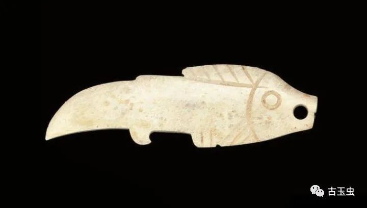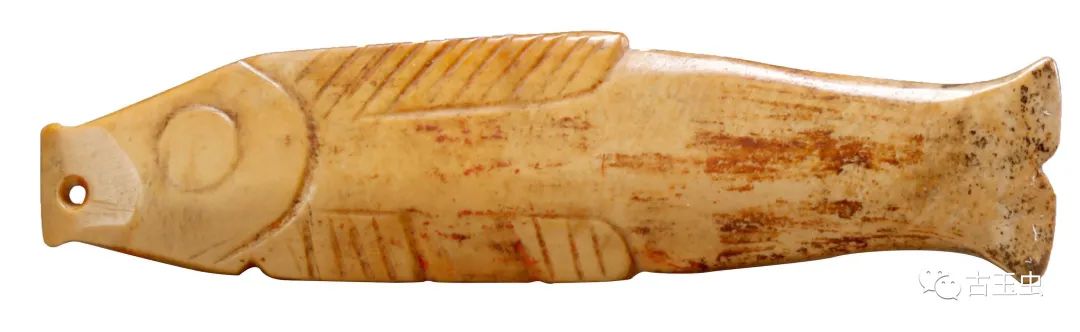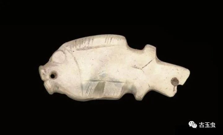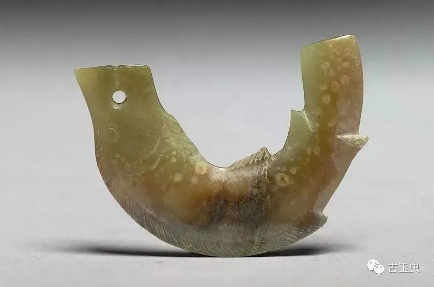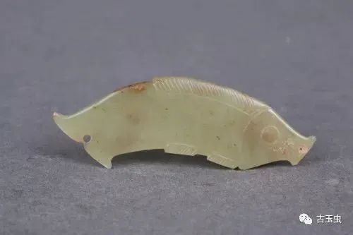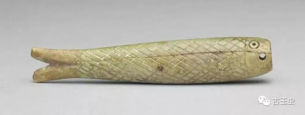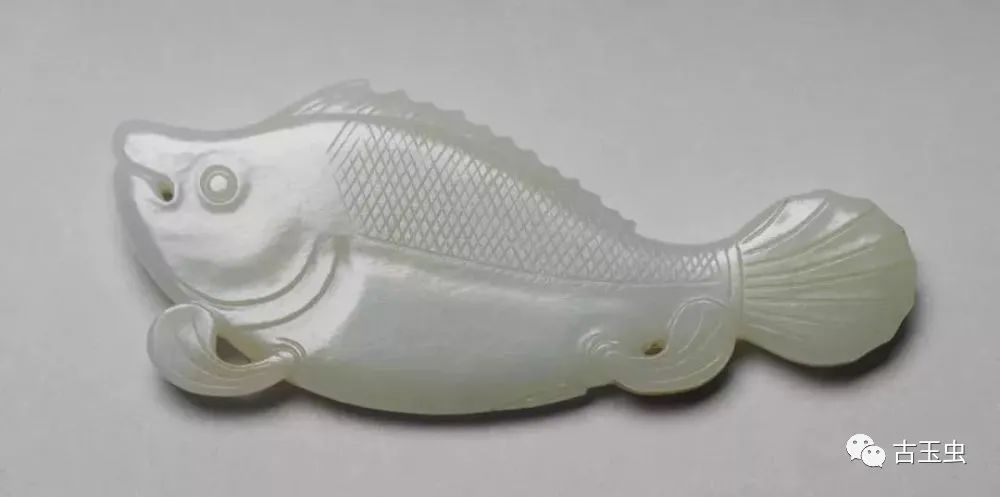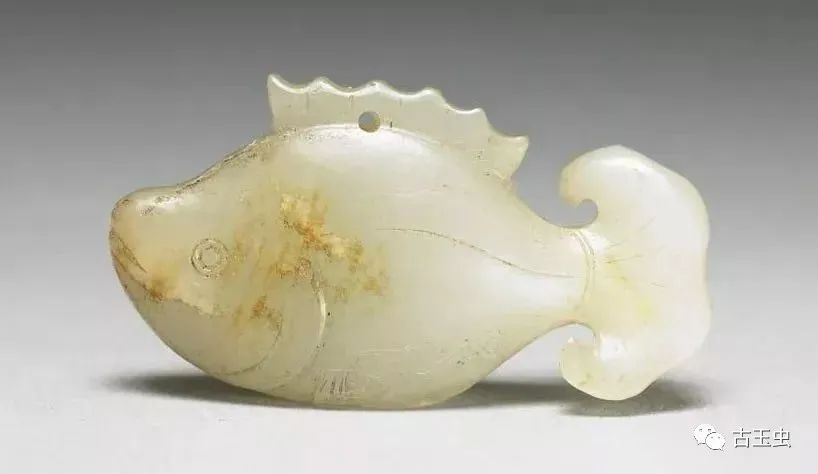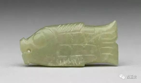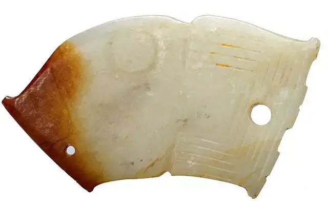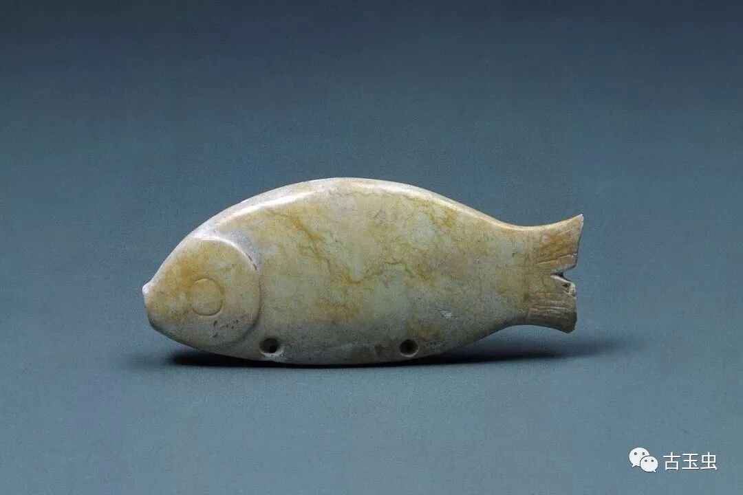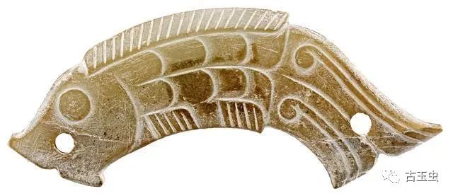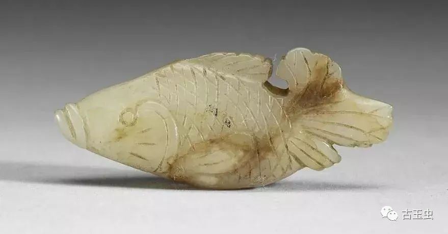 商周时期,玉鱼即为应用广泛的玉饰。早期的玉鱼,多为长形的扁平薄片状,对玉料并不过分追求,雕刻手法简练,仅勾勒外形,有棱有角,鱼鳍、鱼尾等关键部位是以阴刻线纹表示。