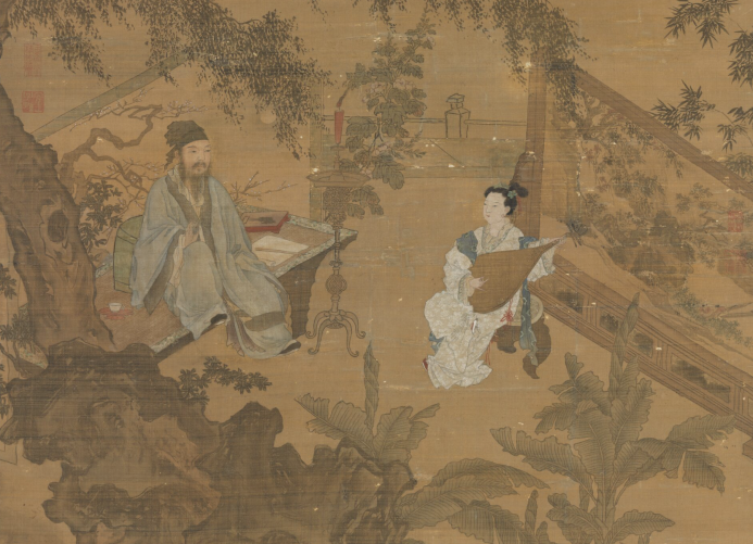 五代十国 周文矩(传)《按乐图》 (局部)台北故宫博物院藏民间传,玲珑见元稹后,因难忍思慕之情,与之悄悄私会,被白居易逐出乐籍,不得善终。可见元稹的撩妹技术和人格魅力,丝毫不逊于白居易。他的一生同样留下了无数的诗篇来歌颂所见、所遇之美女。明 仇英(传)《西厢记图页》(局部) 弗利尔美术馆藏崔双文是元稹远方亲戚家的表妹,两人青梅竹马。但因男欢女爱与仕途抱负相悖,元稹忍痛割爱,弃妹赴京。他将这段情写进《莺莺传》,即后世广为流传的元曲《西厢记》原型。离开双文后,元稹登科及第,被京兆尹韦夏卿看中,娶韦丛为妻。不幸妻子早逝,不甘寂寞的元稹又对在川地任职时邂逅的薛涛倾心不已。史书中记载薛涛“容姿既丽”“通音律,善辩慧,工诗赋”,是妥妥的才女+美女!在蜀山的青川江畔,两人度过了一段神仙眷侣般的日子。不过,这终究也是一段无疾而终的感情。不久后,元稹被调离川地,薛涛再无他的音讯。又过不久,他爱上了江南女伶刘采春,再次情感泛滥。这些辞藻华丽的诗篇,无一不记录着这些曾入元稹“慧眼”的女子们,姣好的容颜和靓丽的青春。可以说,对美女的痴迷让元稹的一生都在不停地寻觅、追求。明 仇英(传)《西厢记图页》(局部) 弗利尔美术馆藏与第一类人相反的,要数第二类——对美女无动于衷型。无论是面对小家碧玉,还是国色天香的美女,他们都能做到心无旁骛,淡然处之。最典型的代表莫过于王安石和柳下惠。王安石生于宋仁宗年间,为“唐宋八大家”之一,曾两度官及宰相,位高权重。他的妻子吴琼不仅是一位才貌双全的女子,还有一颗善解人意之心。《邵氏闻见录》中记录了这样一段逸事:王荆公知制诰,吴夫人为买一妾。荆公见之,曰:“何物也?”女子曰:“夫人令执事左右。”安石曰:“汝谁氏?”曰:“妾之夫为军大将,部米运失舟,家资尽没犹不足,又卖妾以偿。”公愀然曰:“夫人用钱几何得汝?”曰:“九十万。”公呼其夫,令为夫妇如初,尽以钱赐之。