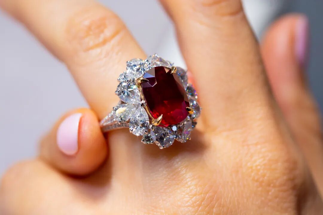 4.01 克拉缅甸「鸽血红」红宝石配钻石戒指,未经加热