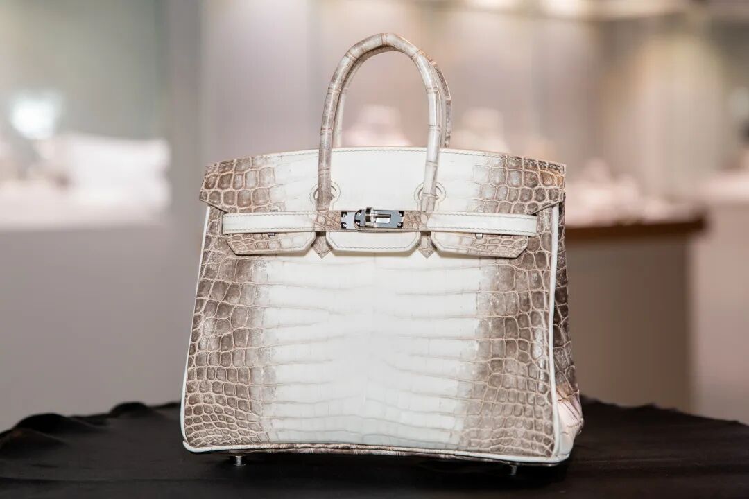 罕见雾面白色喜马拉雅尼罗鳄鱼皮 25 公分柏金包附银色金属配件