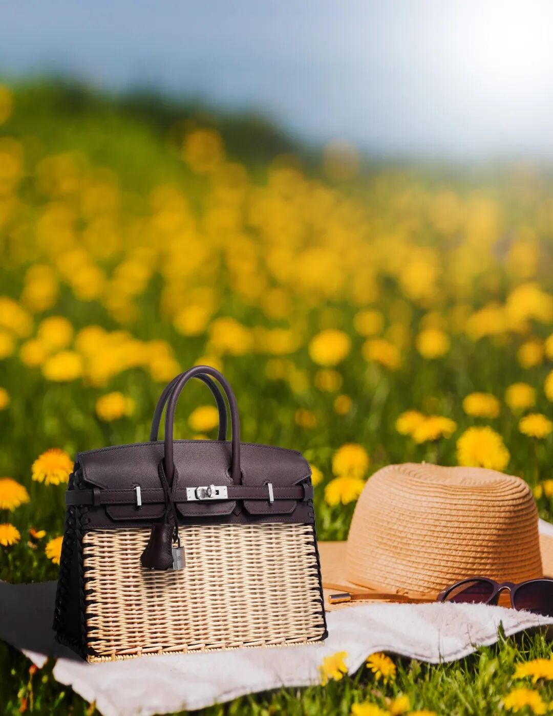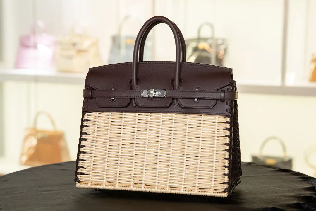 限量版马鞍红色 SWIFT 小牛皮及柳条 25 公分 PICNIC 柏金包附银色金属配件