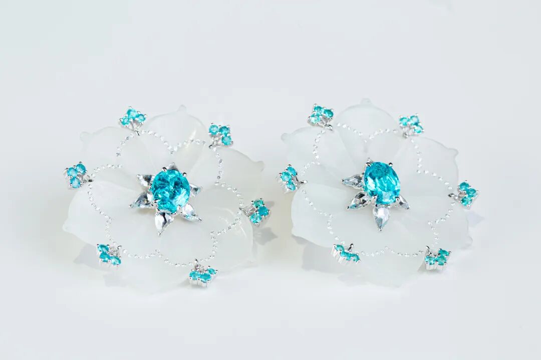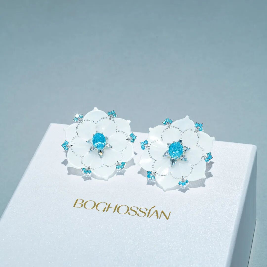 Boghossian 设计 巴西帕拉依巴碧玺配白玉及钻石耳环