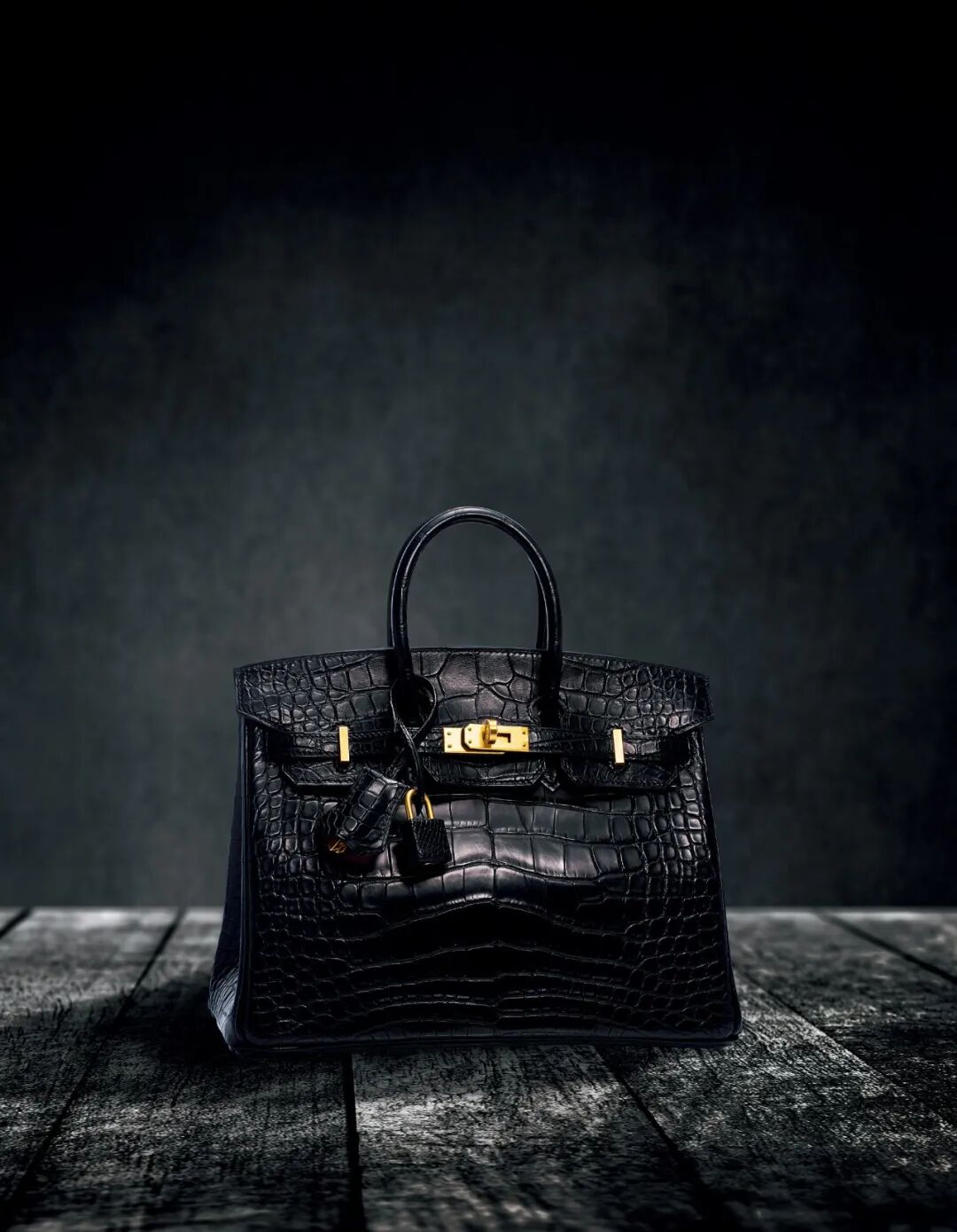 特别订制雾面黑色及国旗红色短吻鳄鱼皮 25 公分柏金包附雾面金色金属配件