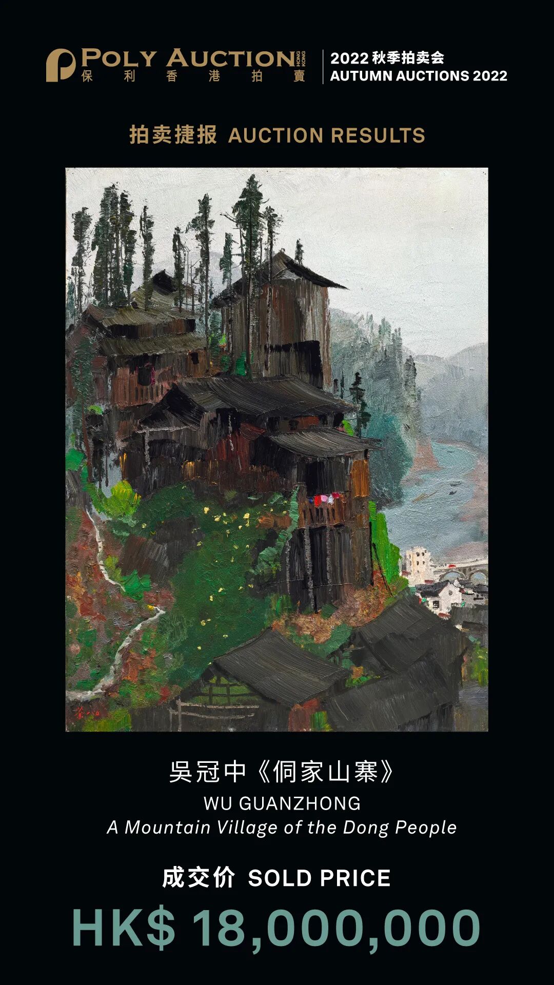 现当代艺术拍卖于今天圆满收槌,录得总成交额港币 4,196 万元,总成交率达 85 %。本次最高成交价拍品为吴冠中创作于 1980 年的《侗家山寨》,最终以港币 1,800 万元成交,其他焦点成交包括中国艺术巨擘的油彩佳作,赵无极狂草时期的代表作《20.6.64》以港币 540 万元成交,及朱德群 90 年代的代表之作《陌生之地》以港币 504 万元成交,印证现代华人版块表现稳定。本次专场拍卖亦刷新多个艺术家纪录,包括炙手可热的女性艺术家塔尼亚·马尔莫列霍《让飓风进来》,以港币 108 万元成交,逾低估价 7 倍;盐田千春红色丝线画布作品《肌肤》以港币 168 万元成交,刷新艺术家之平面作品纪录;日本新锐艺术家金田凉子作品《锅浴》则首次于拍场亮相,以港币 33.6 万元成交,创下艺术家纪录。