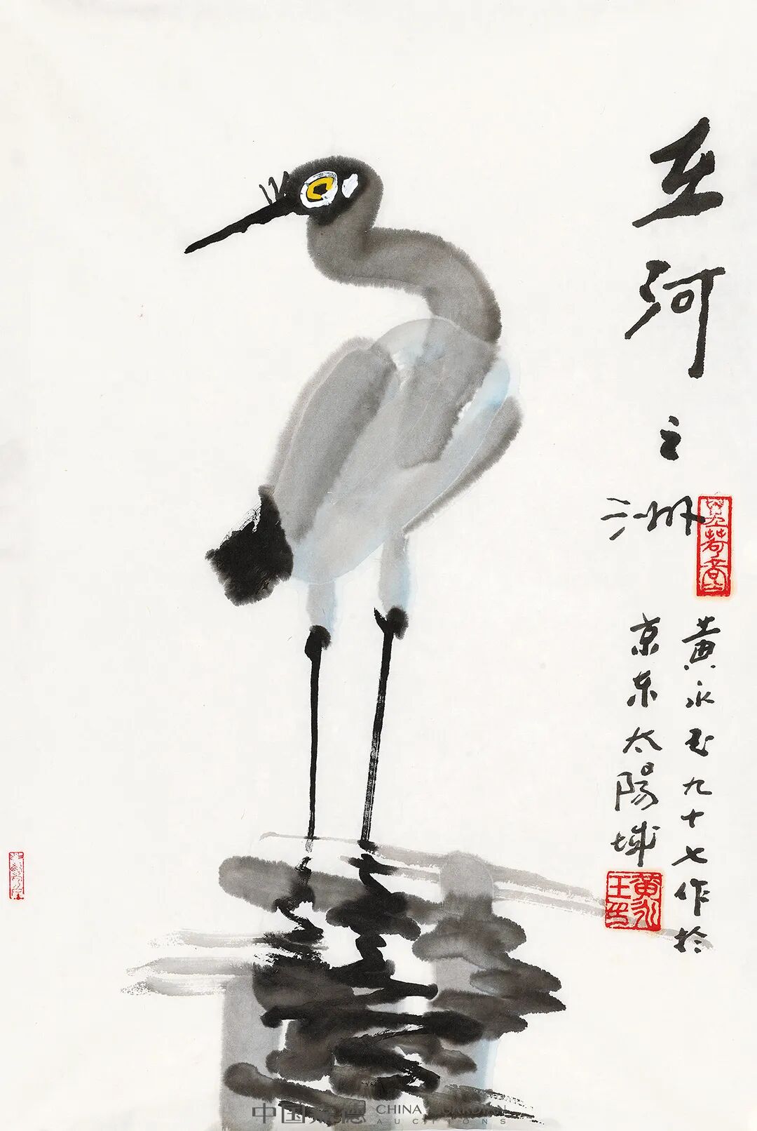 题识:鹤来。庚申夏日,黄永玉作。