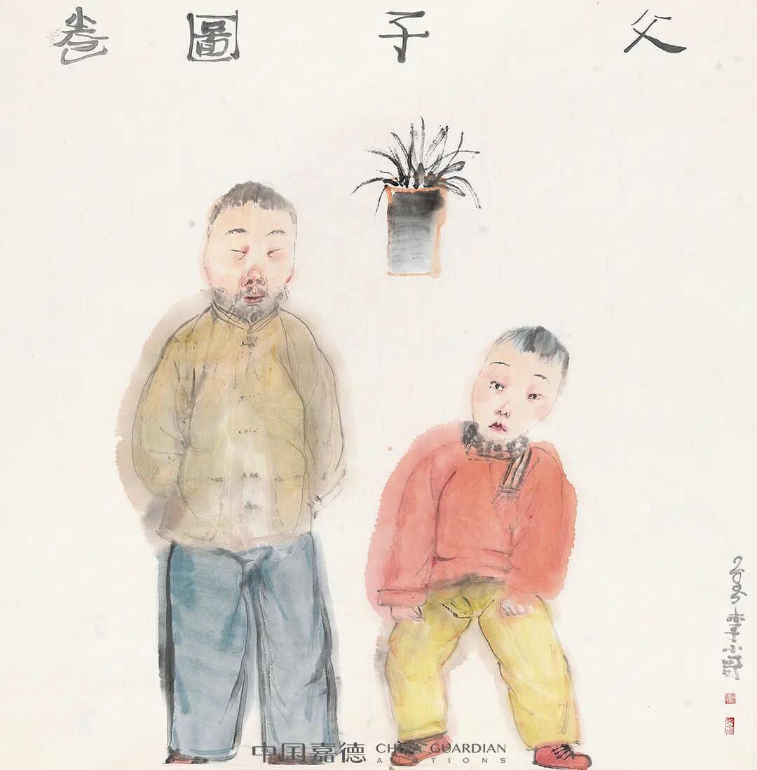 题识:父子图卷。2005。李小哥。
