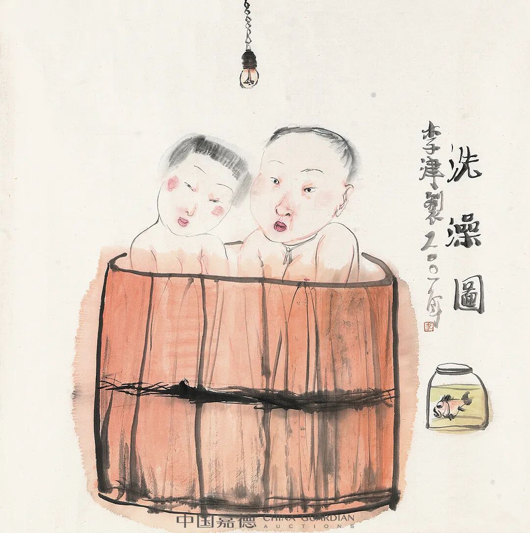 题识:洗澡图。李津制 2007 年。