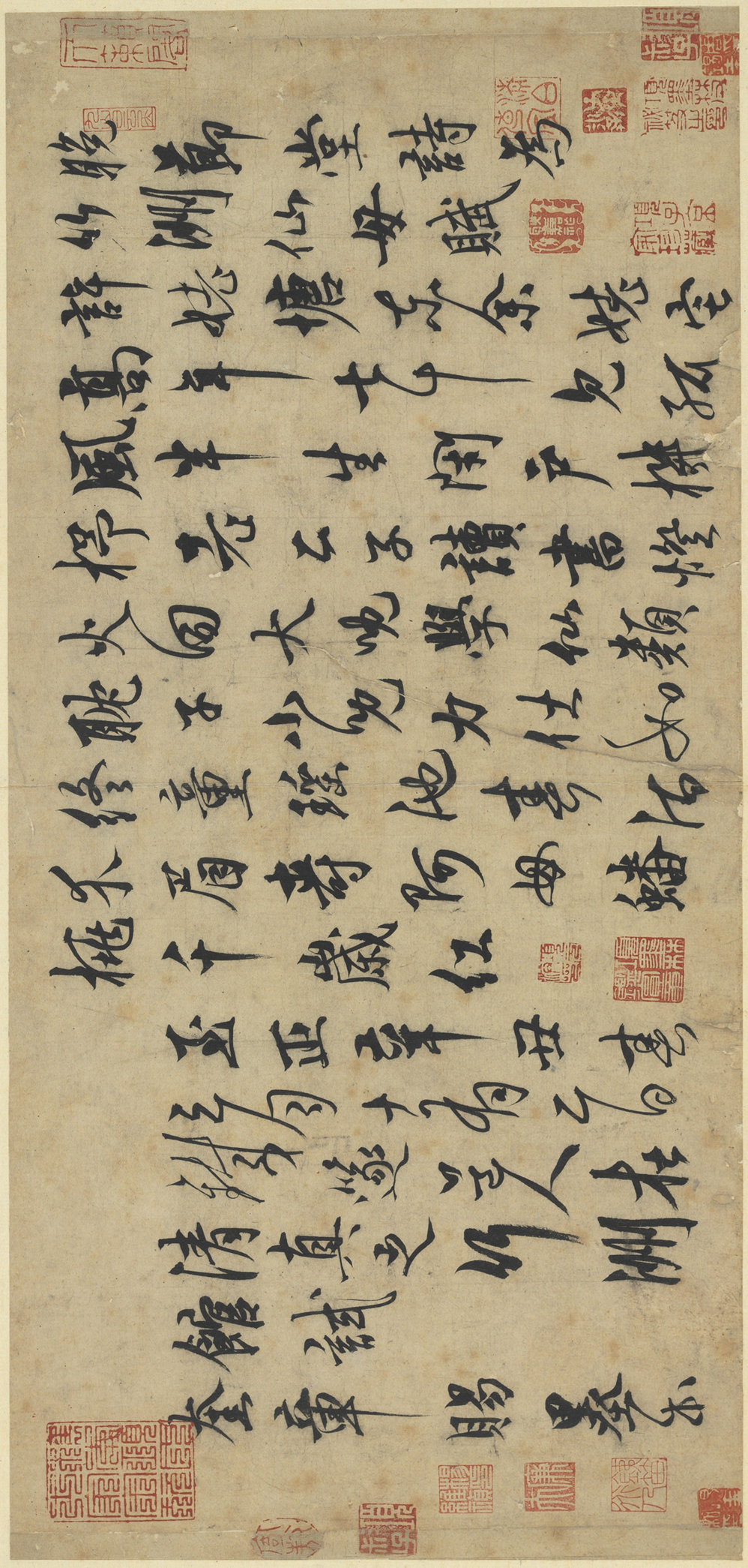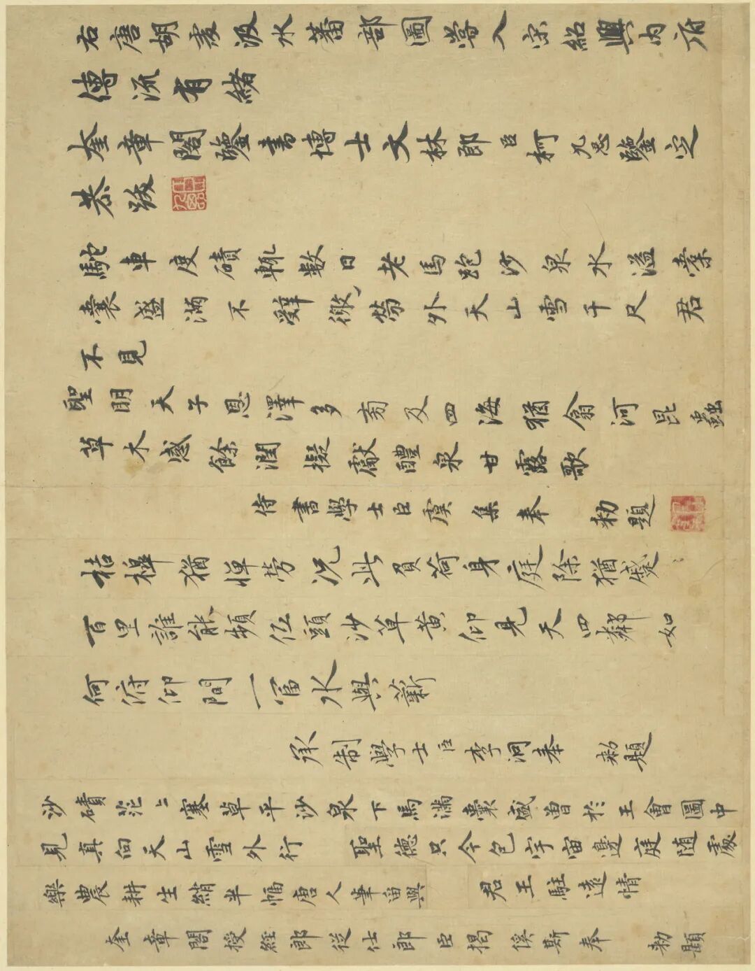 沙碛茫茫塞草平。沙泉下马满囊盛。曾于王会图中见。真向天山雪外行。圣德只今包宇宙。边庭随处乐农耕。生绡半幅唐人笔。留与君王驻远情。奎章阁授经郎从仕郎臣揭傒斯奉勅题。