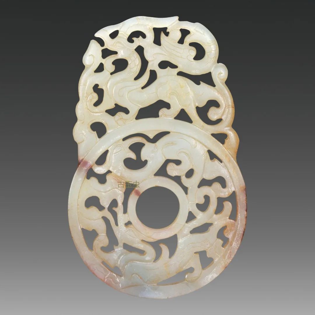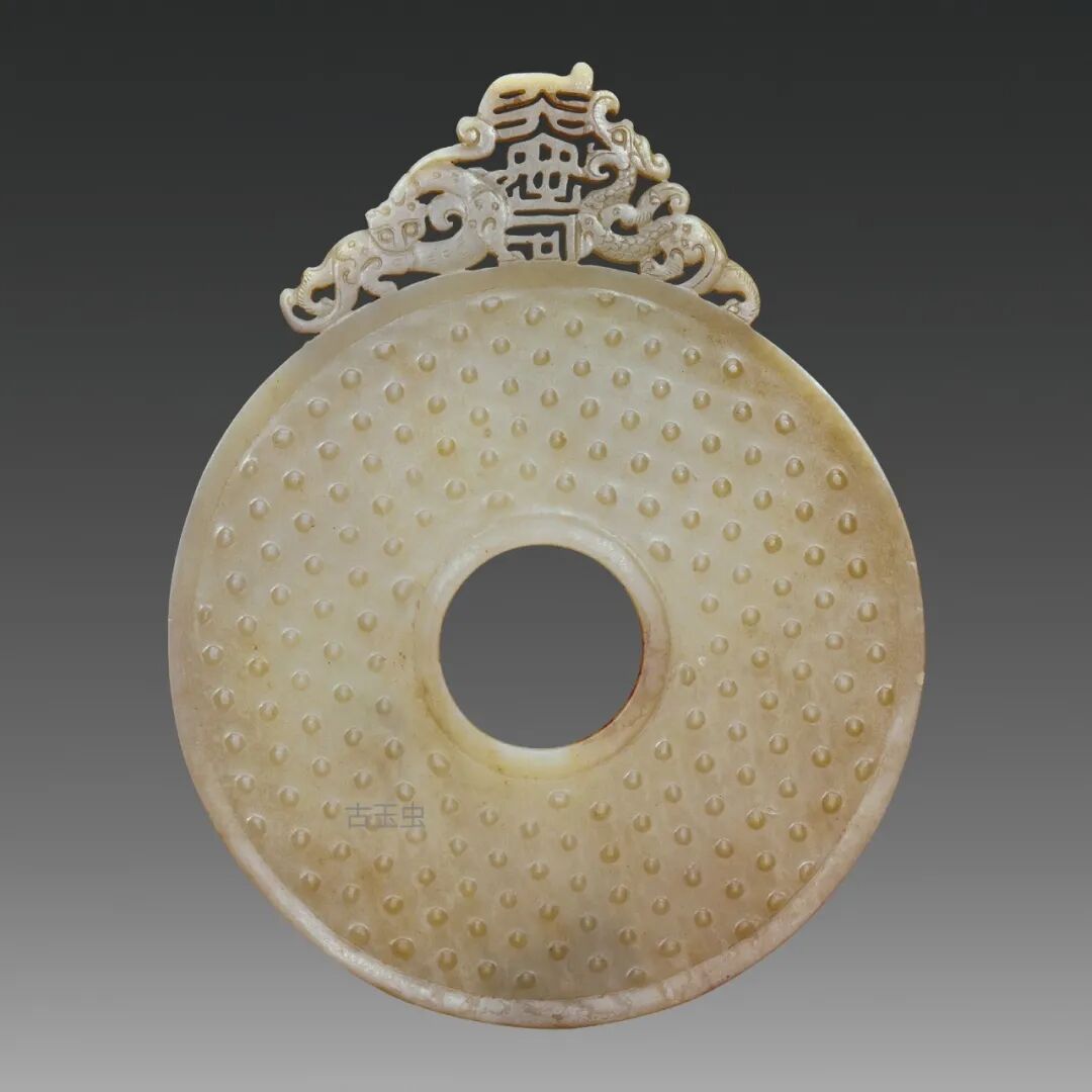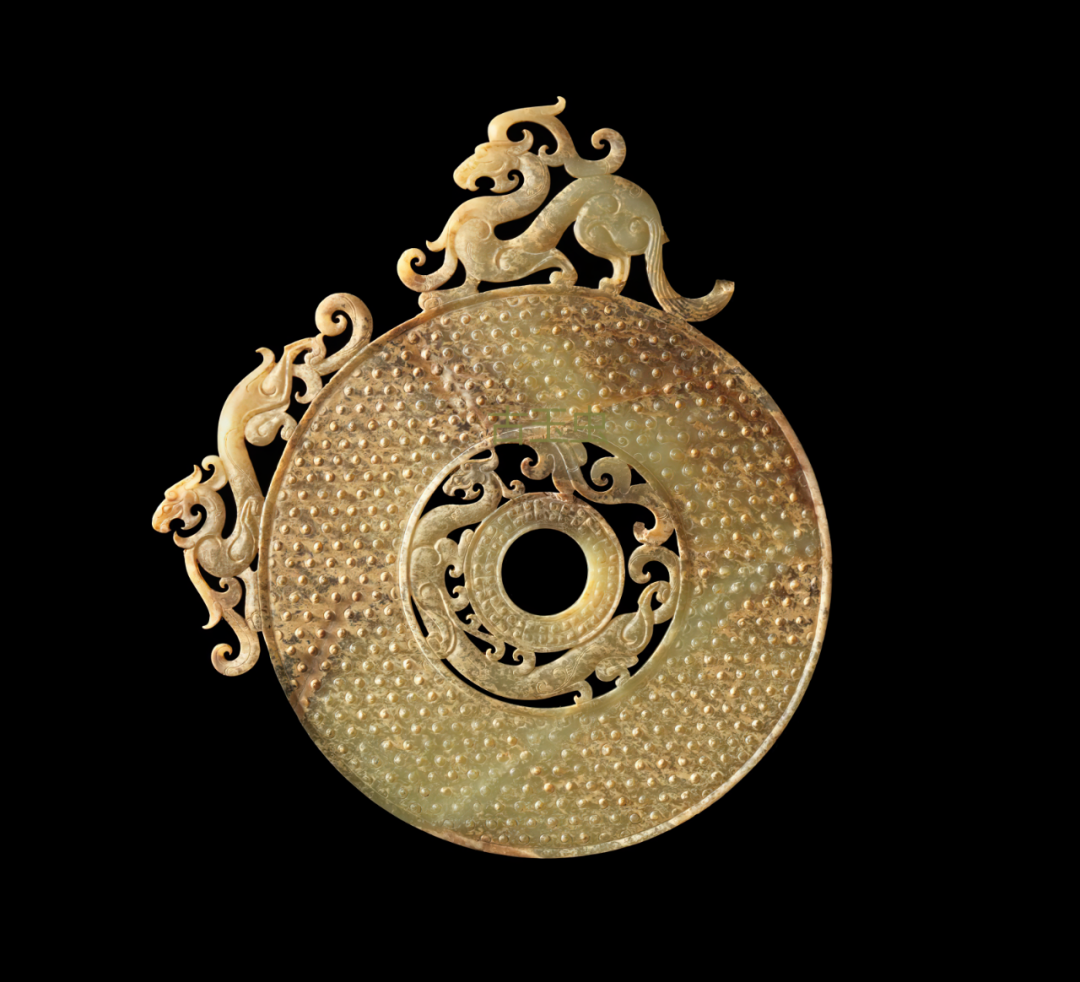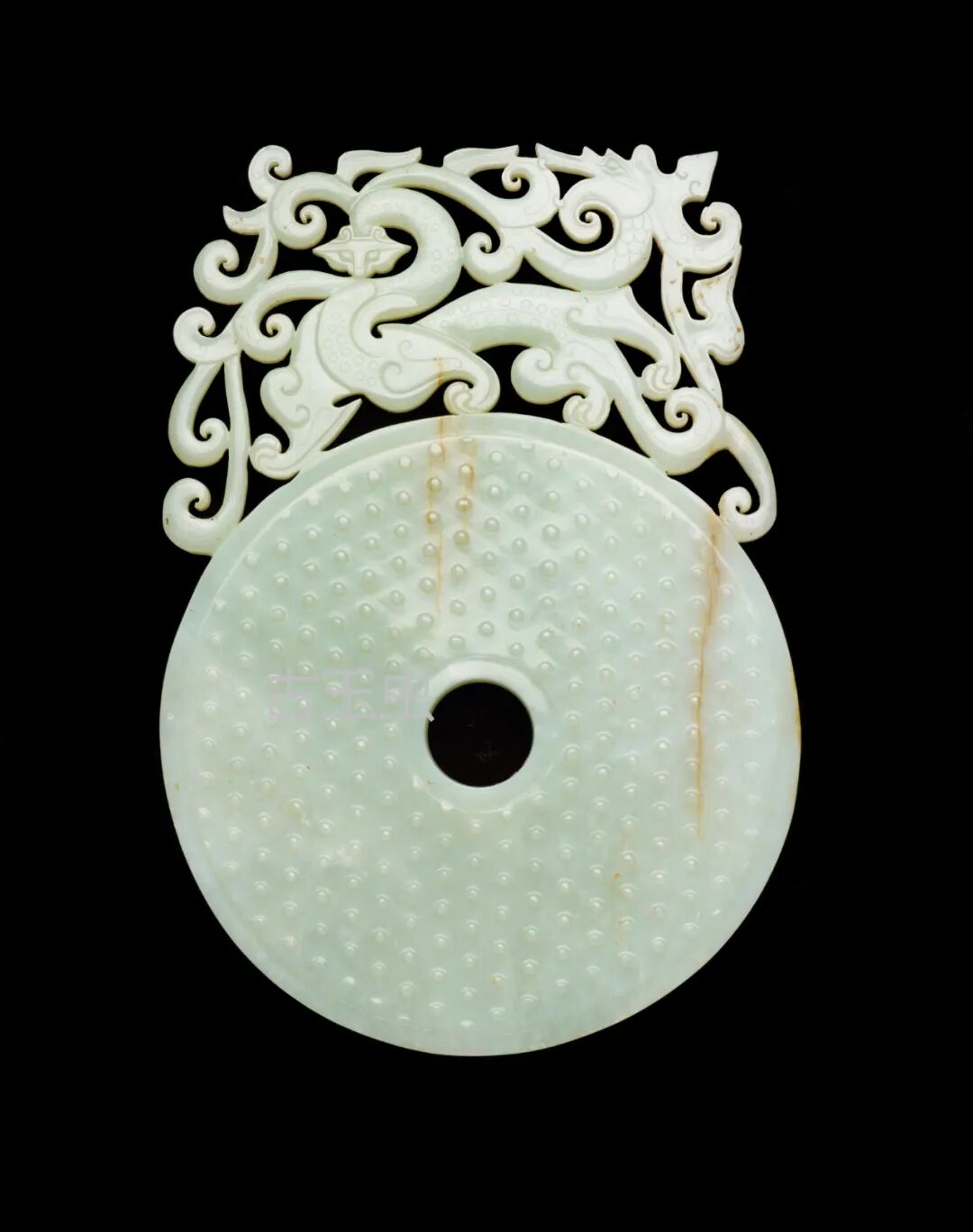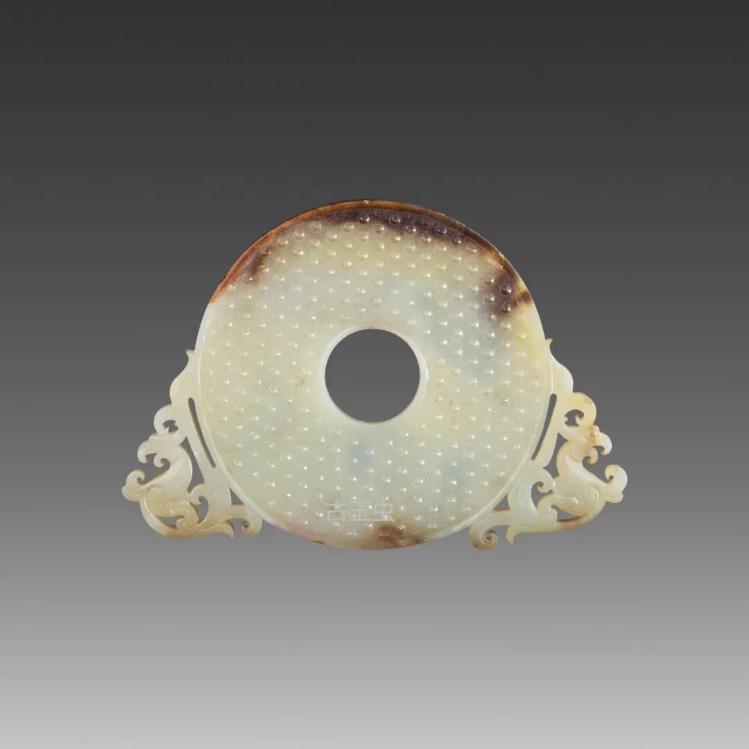 东汉 白玉乳丁螭虎瑞兽纹出廓璧(213万)