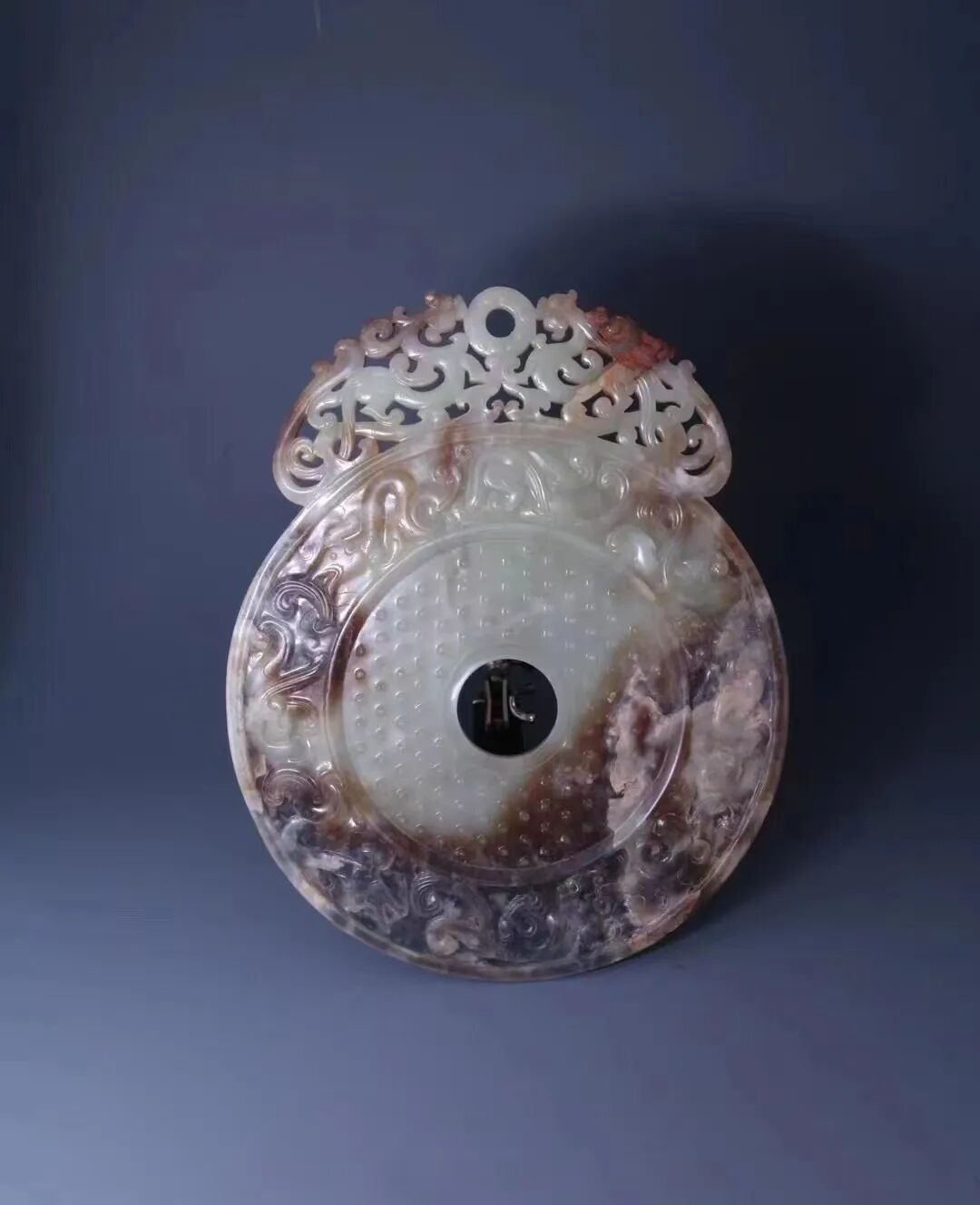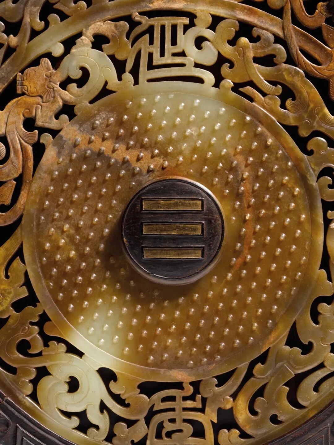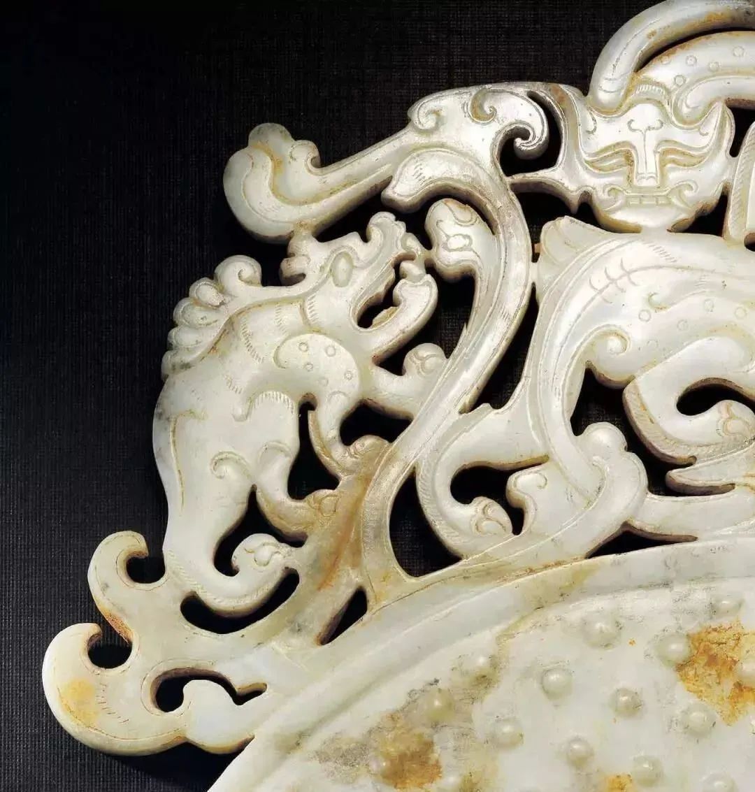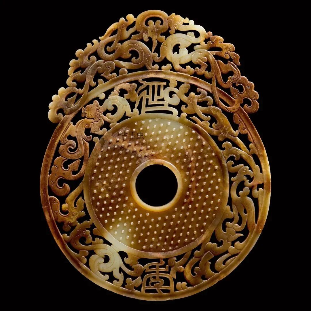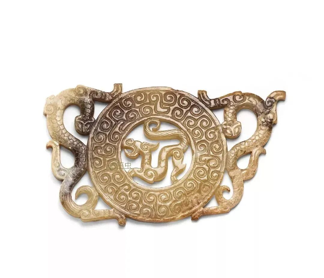 东汉 白玉乳丁螭虎瑞兽纹出廓璧(213万)