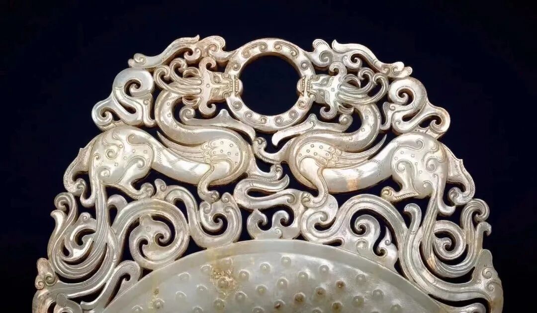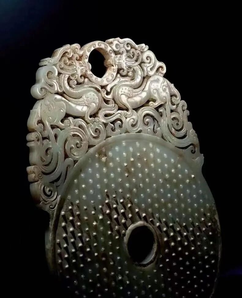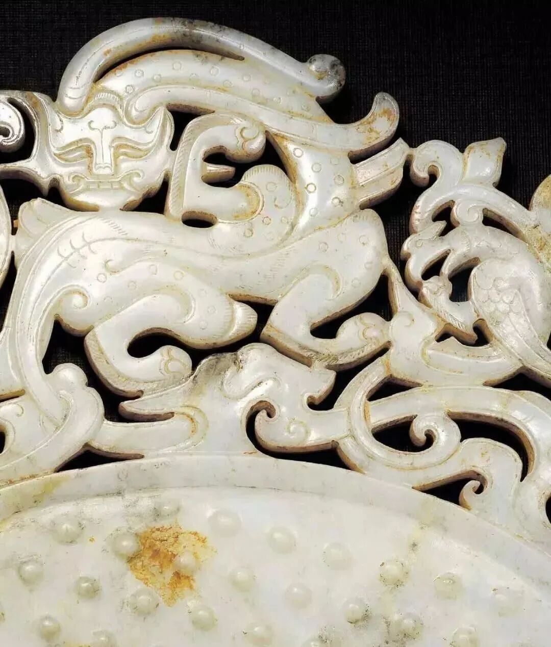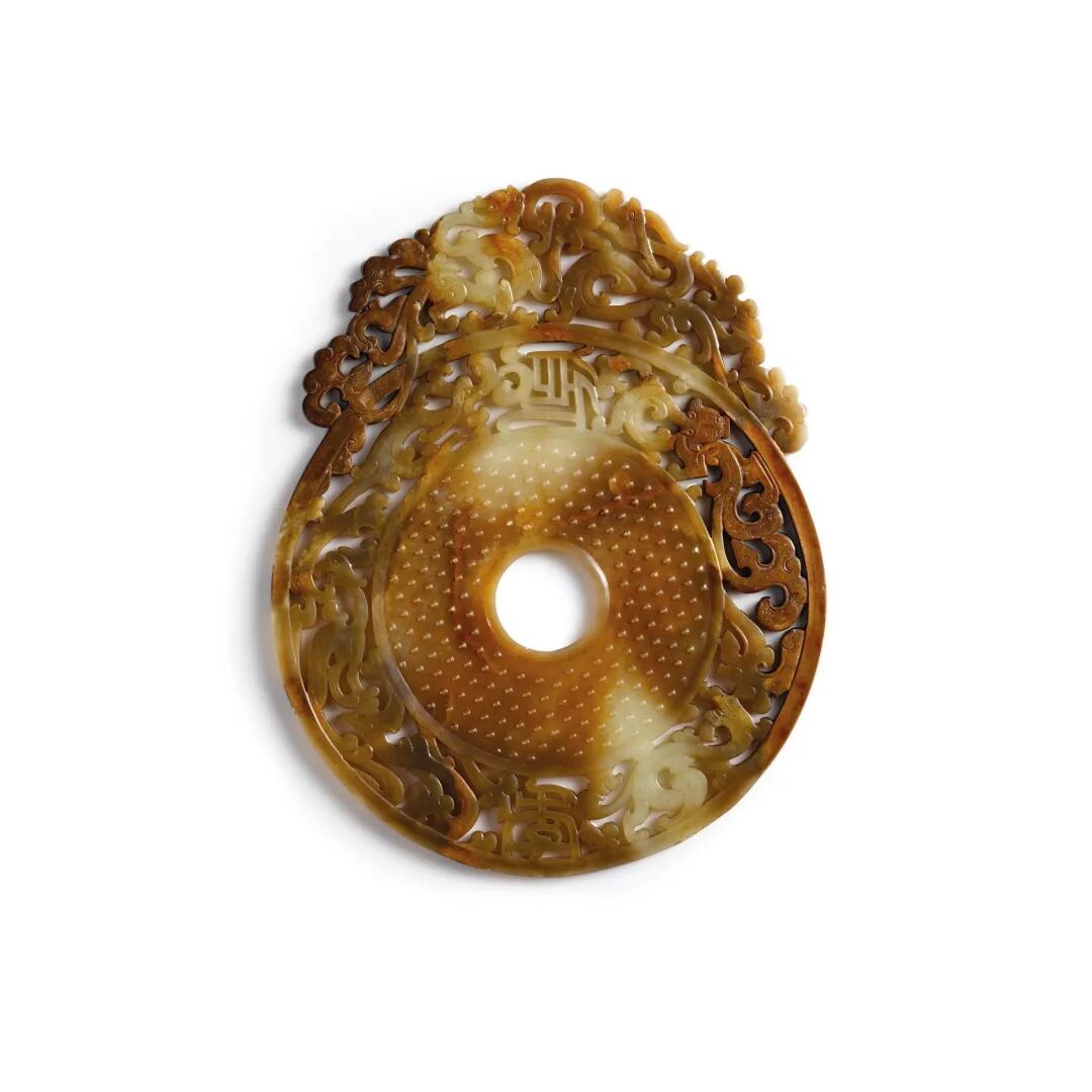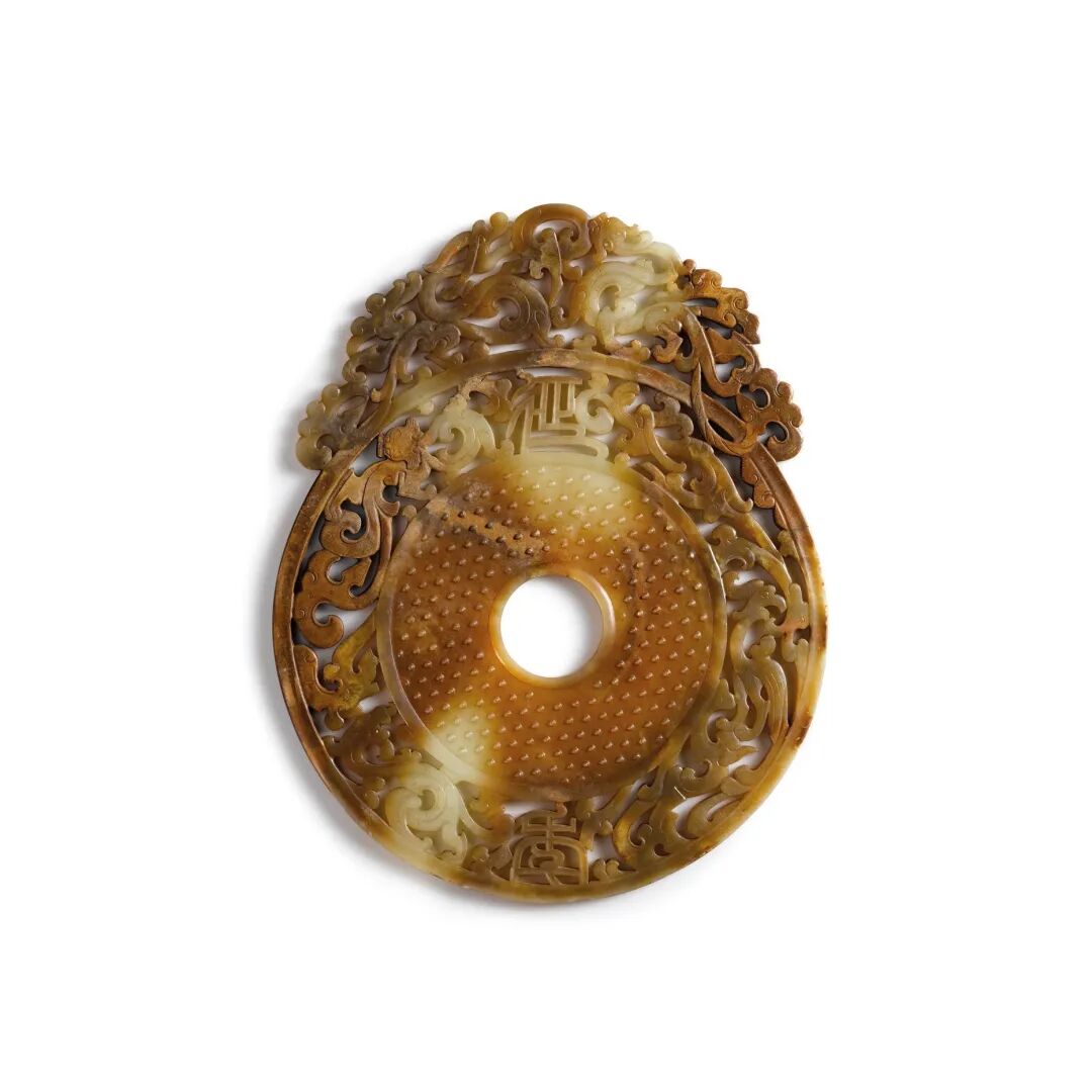 东汉 白玉乳丁螭虎瑞兽纹出廓璧(213万)