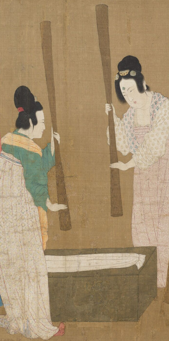 上图:北宋 赵佶《摹赵萱捣练图》局部