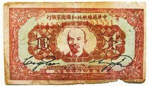 1931年11月,中华苏维埃共和国国家银行成立之后,在苏区要统一货币。