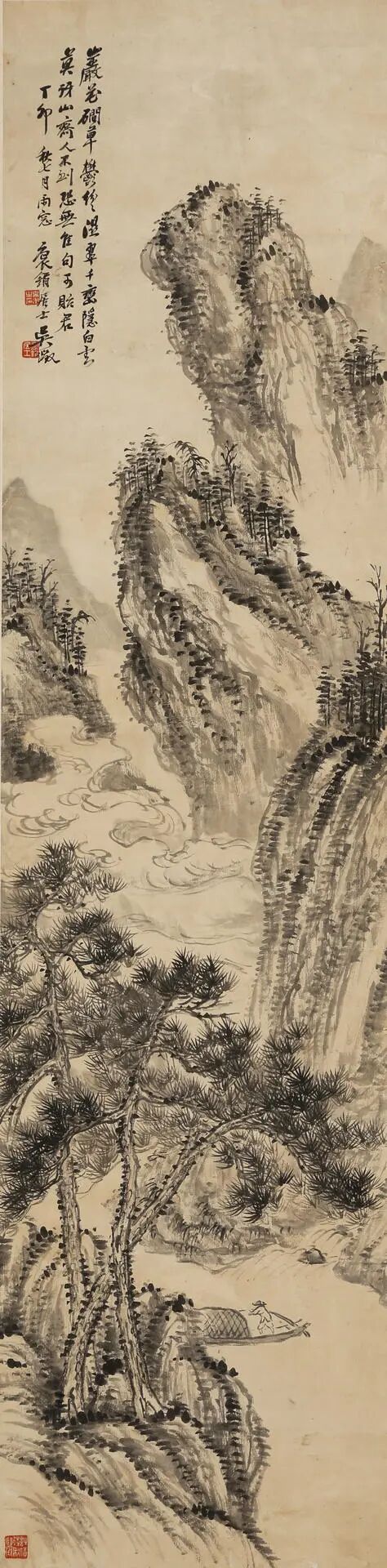 题识:丁卯秋七月雨窗,袌鋗居士吴徵。