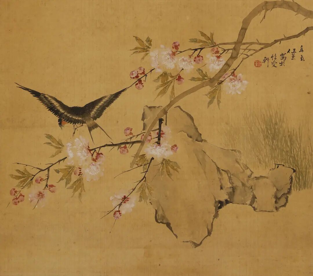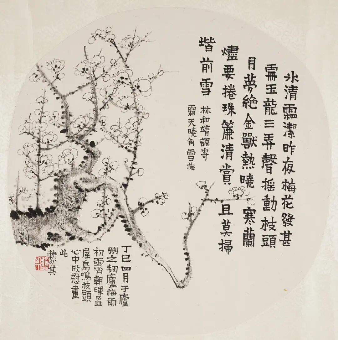 题识:丁巳四月,于庐州之韧庐,梅雨初霁,朝晖盈屋,鸟鸣枝头,心中欣慰画此,赖少其。