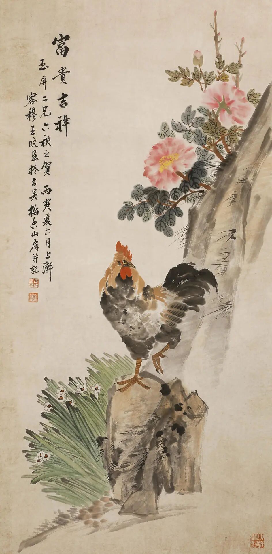 题识:玉屏二兄六秩之贺,丙寅夏六月上澣,容穆王旼画于古吴梅香山房并记。