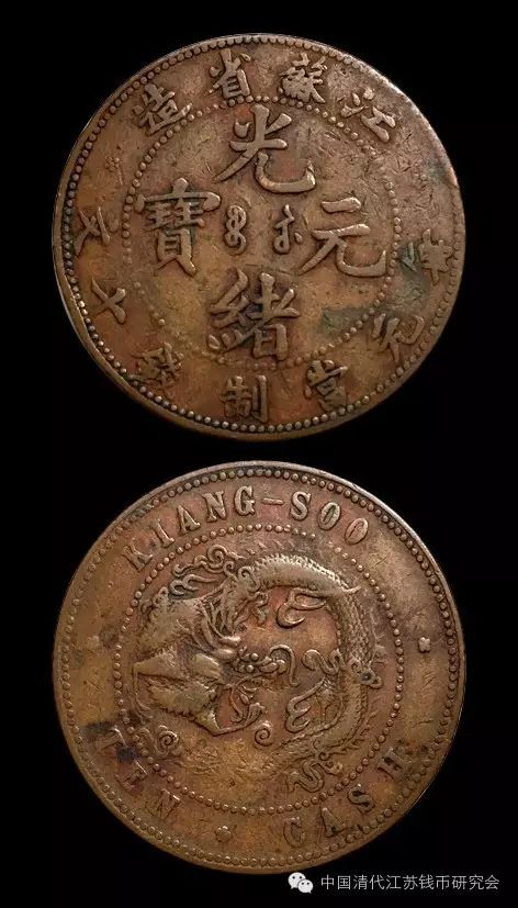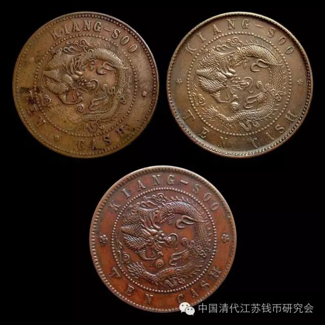 (从图上可见,修模以后,字母间距变的均匀了,TEN与CASH之间的梅花纹也被修掉了)这枚钱币的发现对于研究早期江苏铜元有着重要的参考意义。