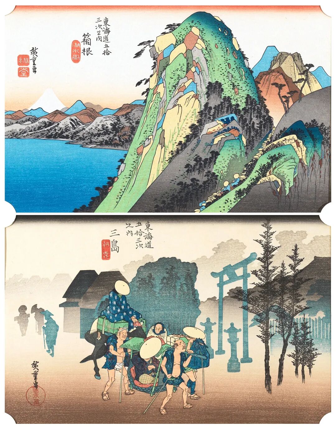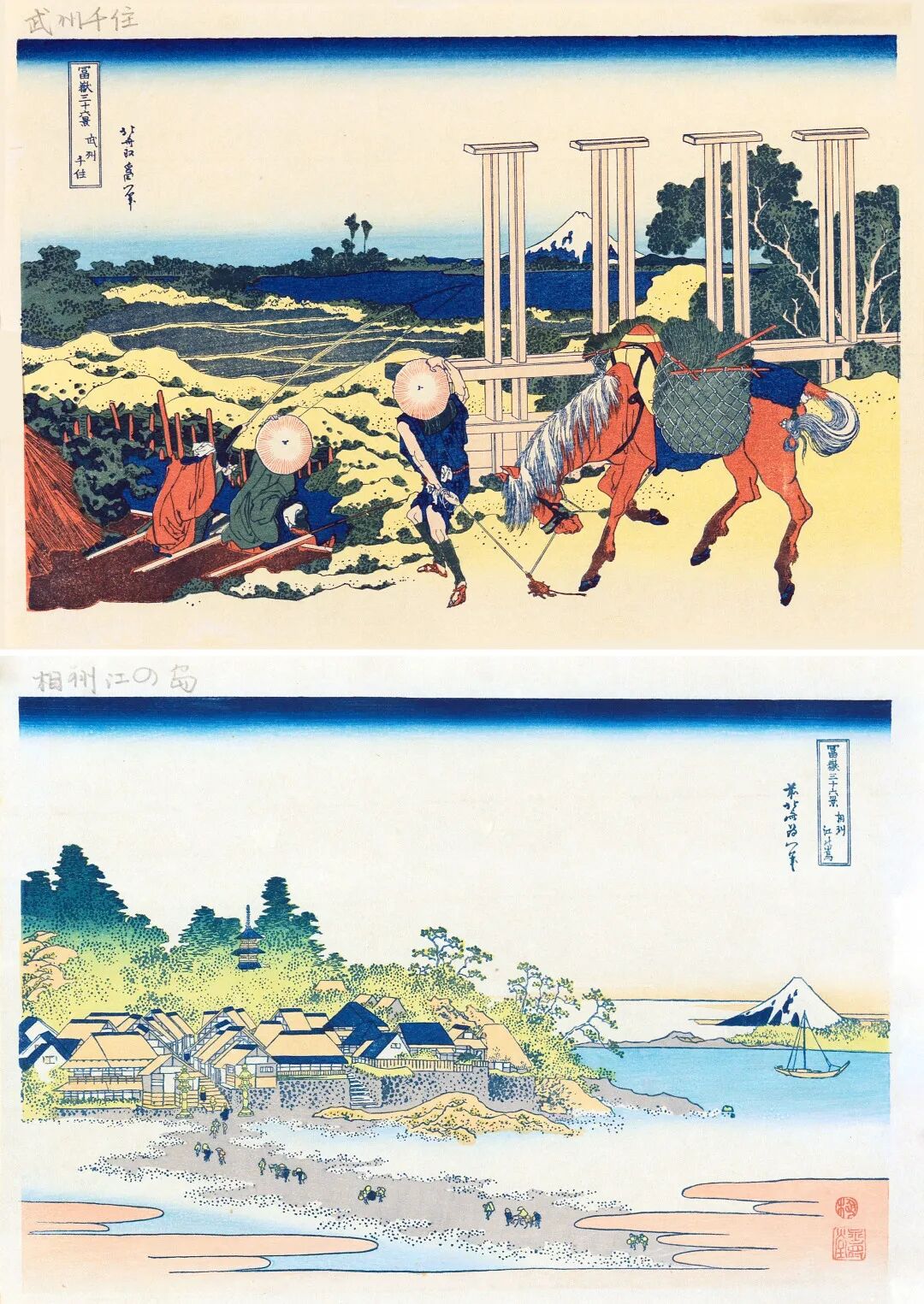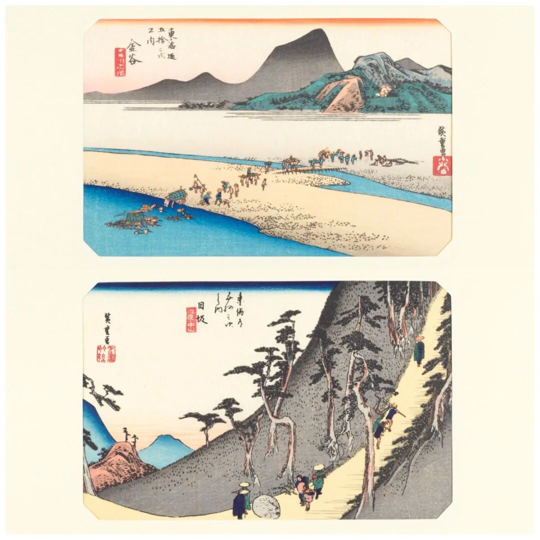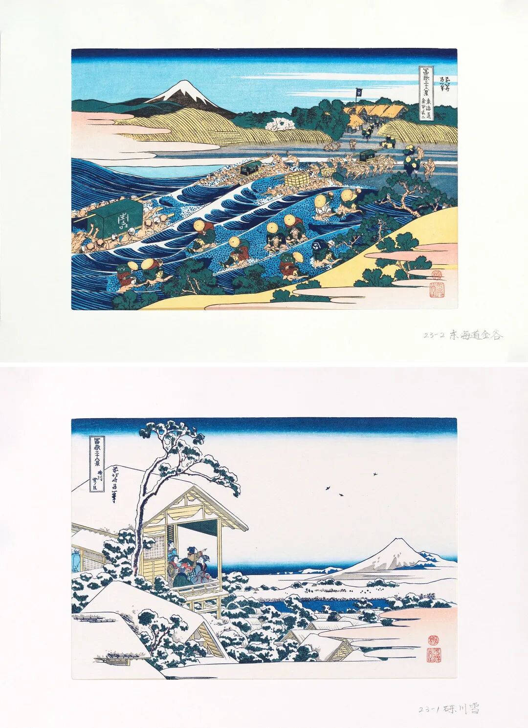 葛饰北斋 23-1砾川雪 23-2东海道金谷不二