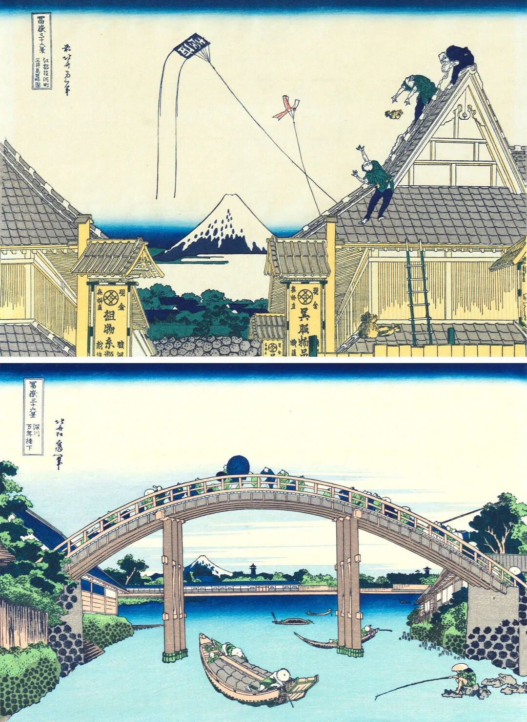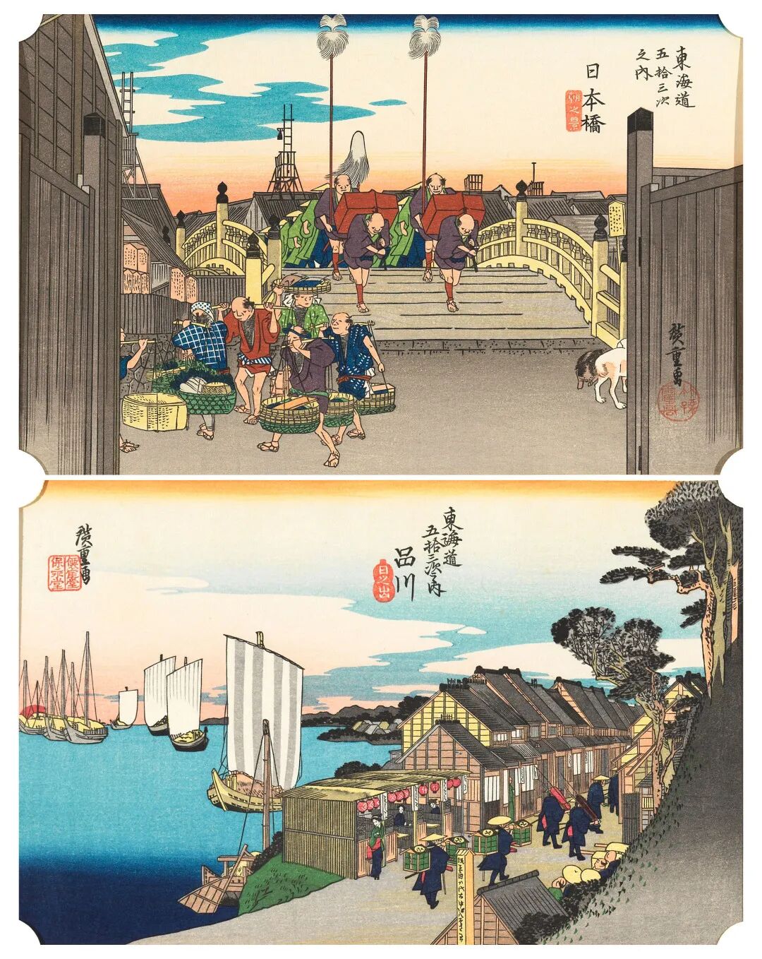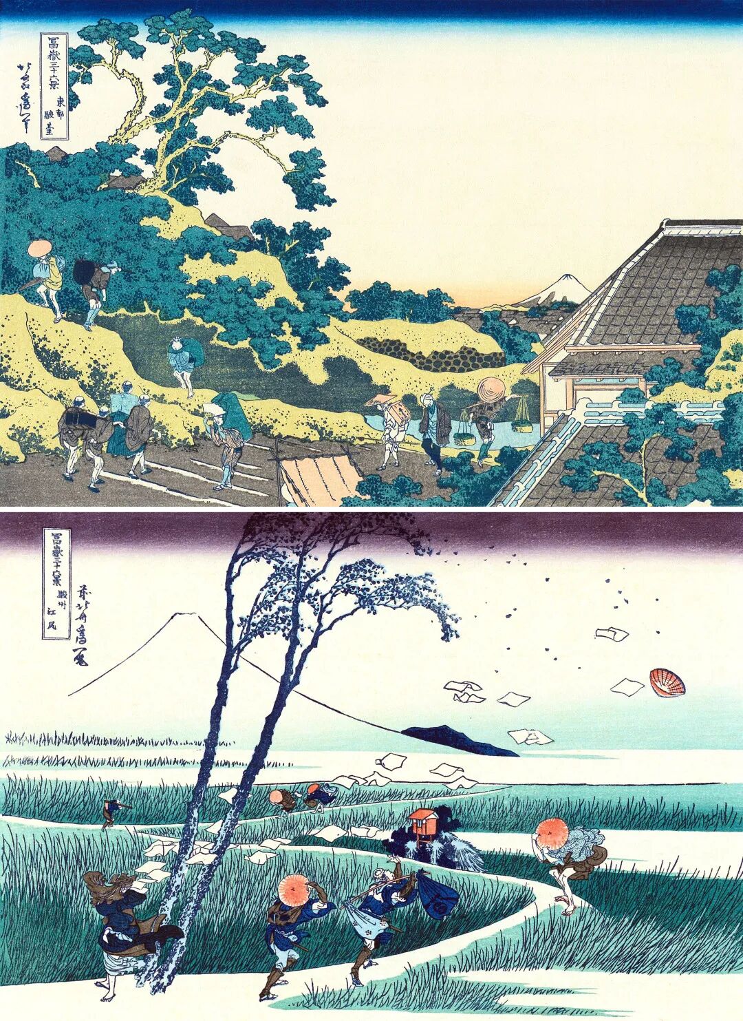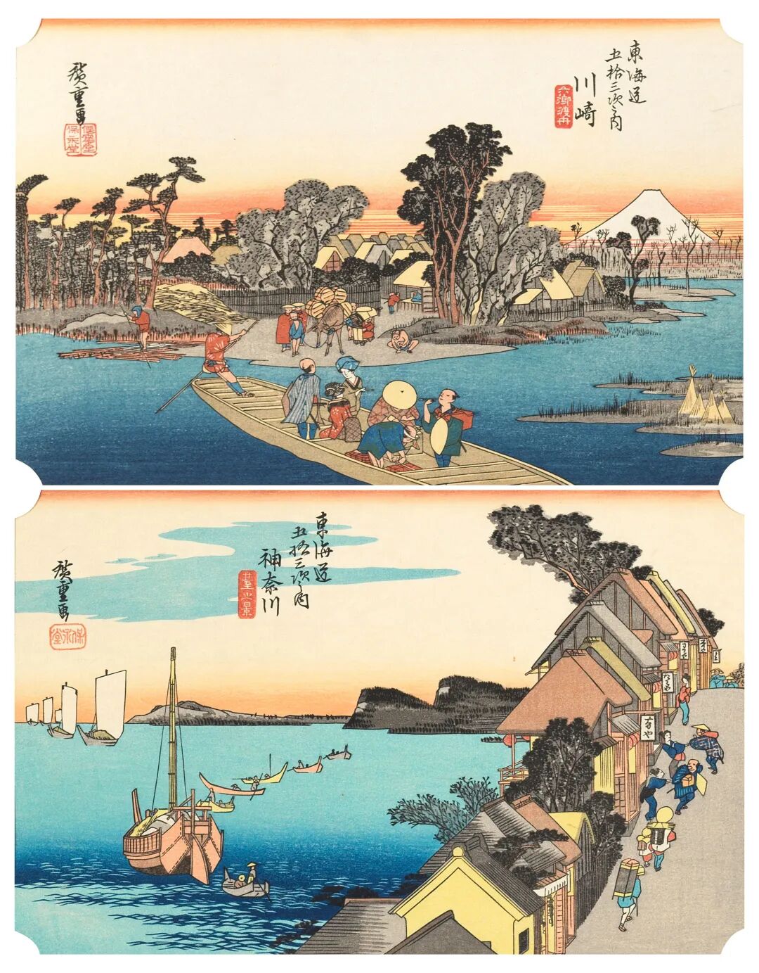葛饰北斋 23-1砾川雪 23-2东海道金谷不二