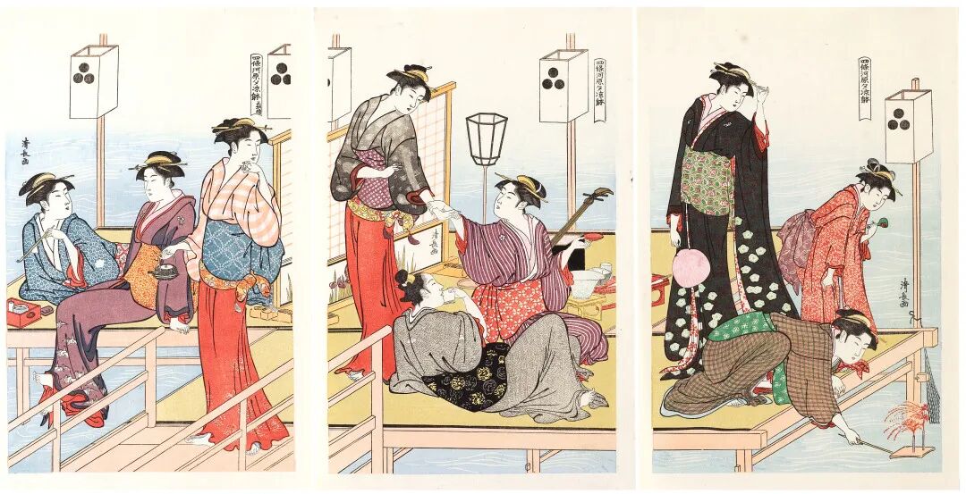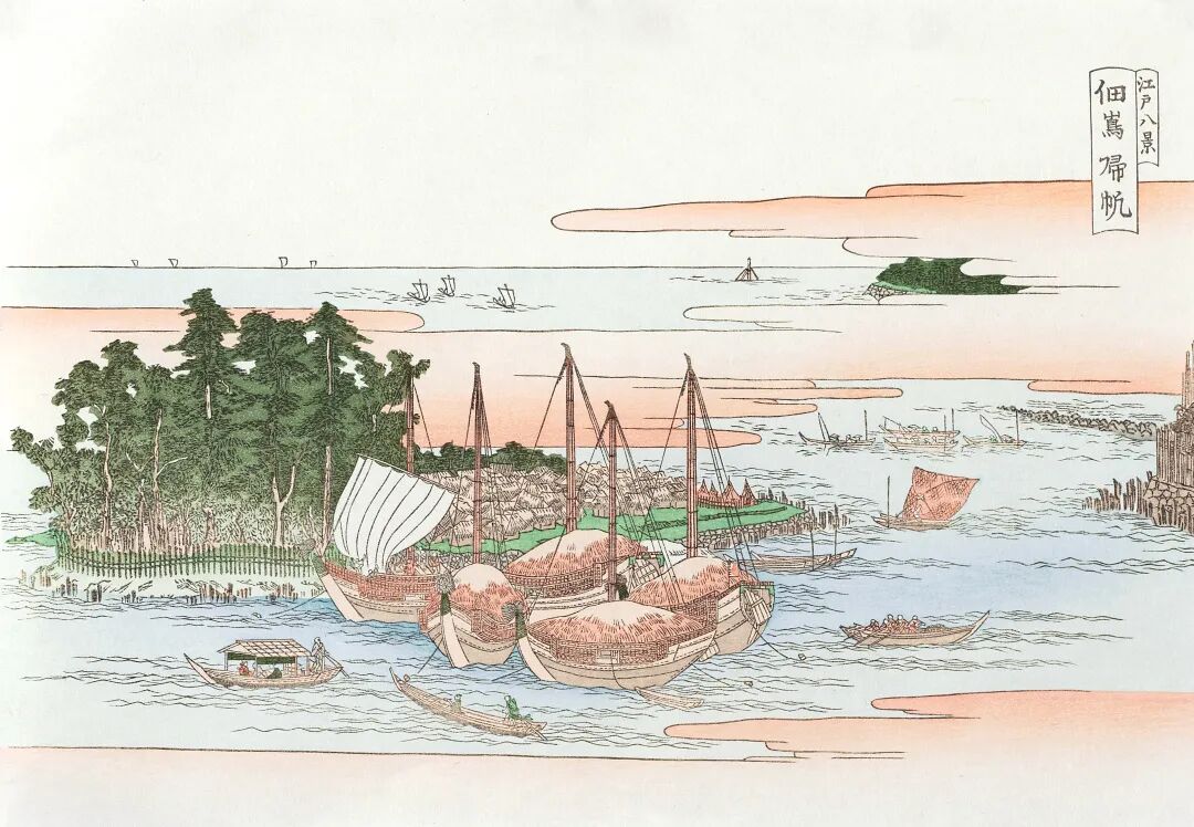 葛饰北斋 江都骏河町三井见世略図、深川万年桥下