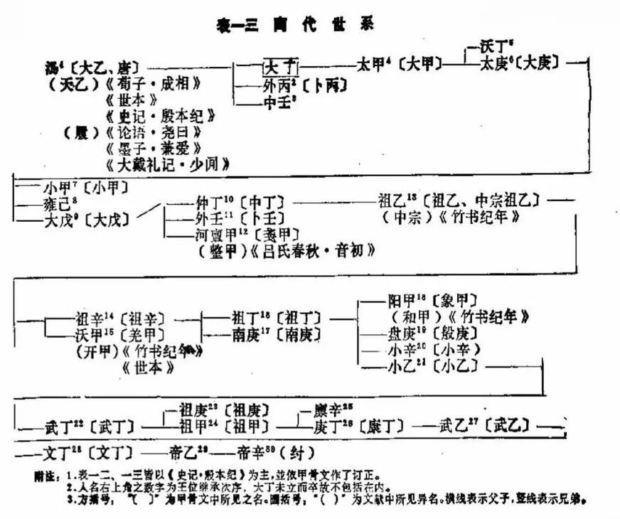 据《夏本纪》载,夏帝王有名太康、仲康、少康者,陈梦家《殷虚卜辞综述》以为即大庚、中庚、少庚,系日名无疑。夏史中帝王以十干为名的还有孔甲、风甲、履癸。履癸即夏桀。商代先公自上甲微以下,皆以十干纪日符为名号。卜辞所见王室先妣及王室其他成员也类之。商王全系日名,从大乙(汤)到帝辛(纣)31王均以十干称名。![]()