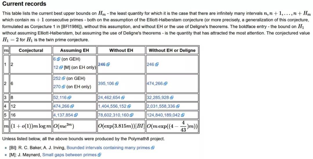 PolyMath8项目的当前纪录(http://michaelnielsen.org/polymath1/index.php?title=Bounded_gaps_between_primes)
