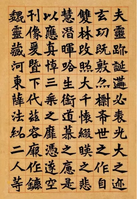 北碑书法用刀精熟,单字结体宽博,笔势刚健舒展。这样的楷书,在晋人小楷和唐人楷书之外,别开生面。到了清代,康有为等学者竭力推崇北碑,认为“魏碑无不佳者,虽穷乡儿女造像,骨血俊宕,拙厚中皆有异态”。